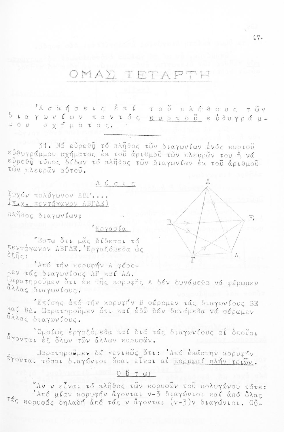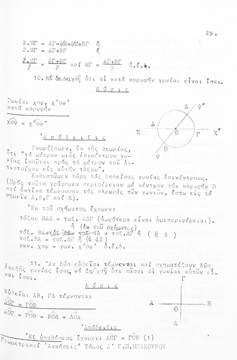 Βαθμίδα εκπαίδευσης: Δευτεροβάθμια Τάξη: Ε' Γυμνασίου Μάθημα: Μαθηματικά Γλώσσα: Καθαρεύουσα Παρουσίαση περιεχομένου: Μαθητικό βοήθημα Μαθηματικών της Ε΄ Γυμνασίου που περιέχει ασκήσεις γεωμετρίας και τις λύσεις τους. |