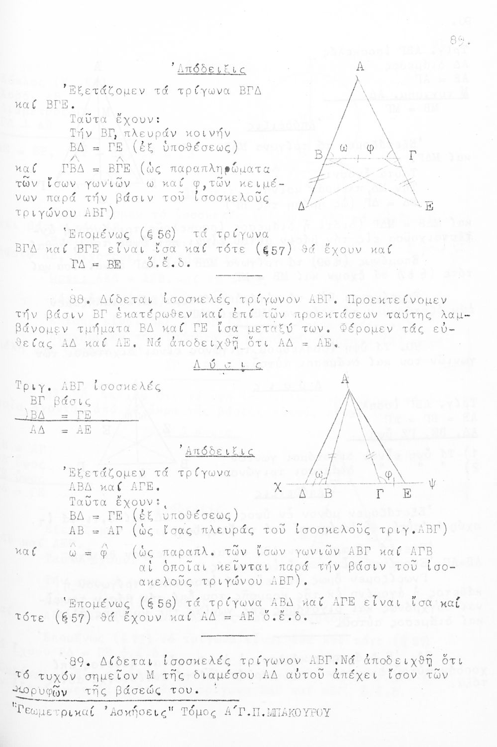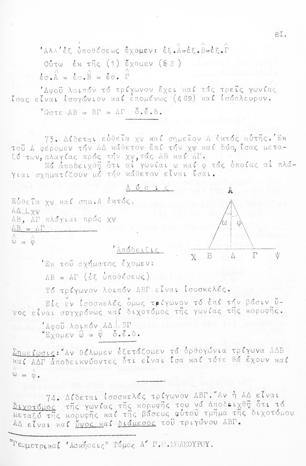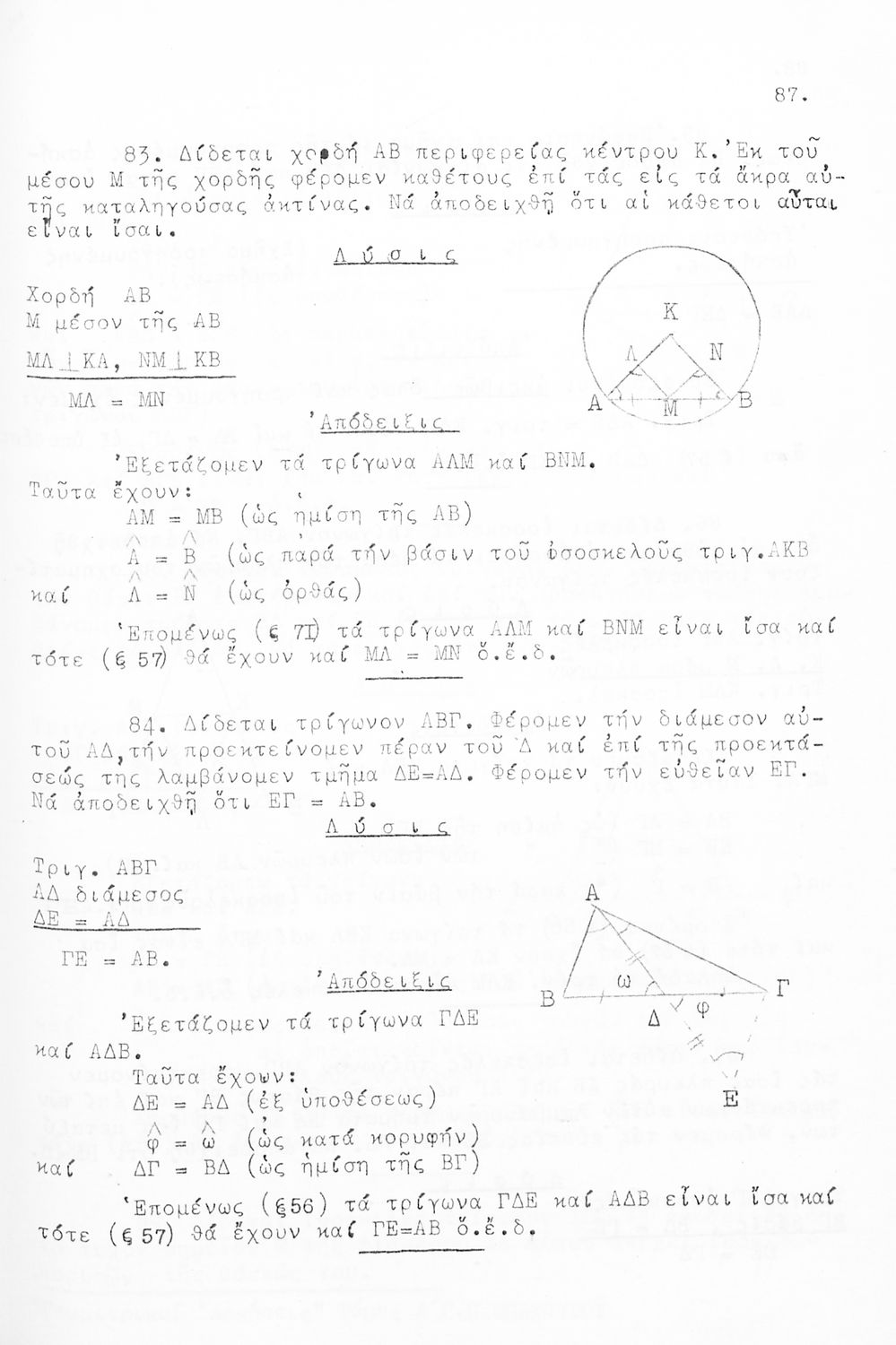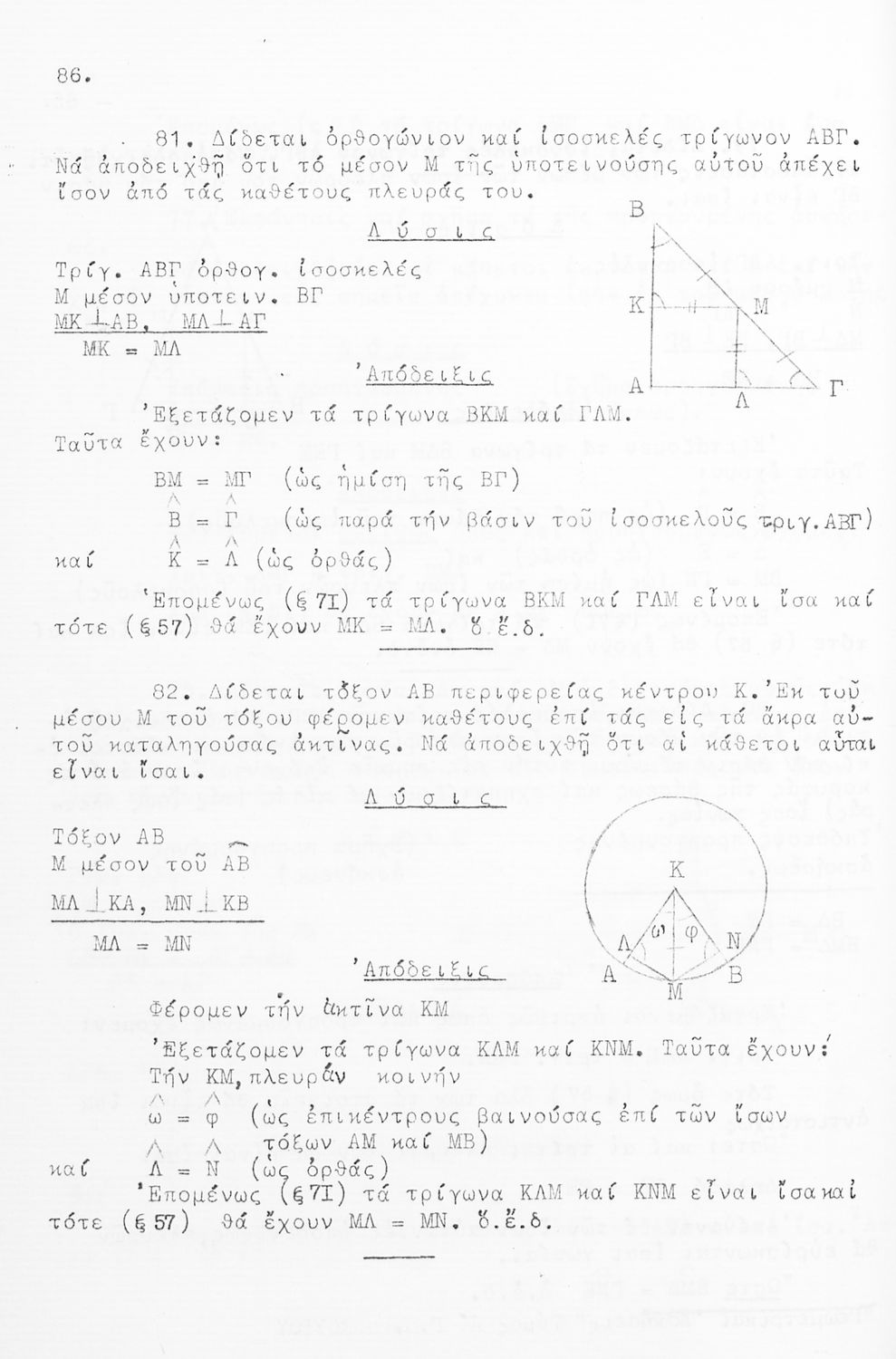 Βαθμίδα εκπαίδευσης: Δευτεροβάθμια Τάξη: Ε' Γυμνασίου Μάθημα: Μαθηματικά Γλώσσα: Καθαρεύουσα Παρουσίαση περιεχομένου: Μαθητικό βοήθημα Μαθηματικών της Ε΄ Γυμνασίου που περιέχει ασκήσεις γεωμετρίας και τις λύσεις τους. |