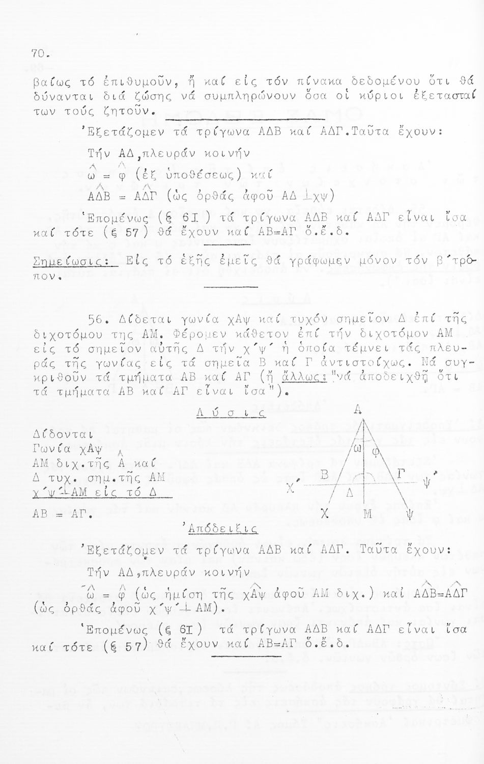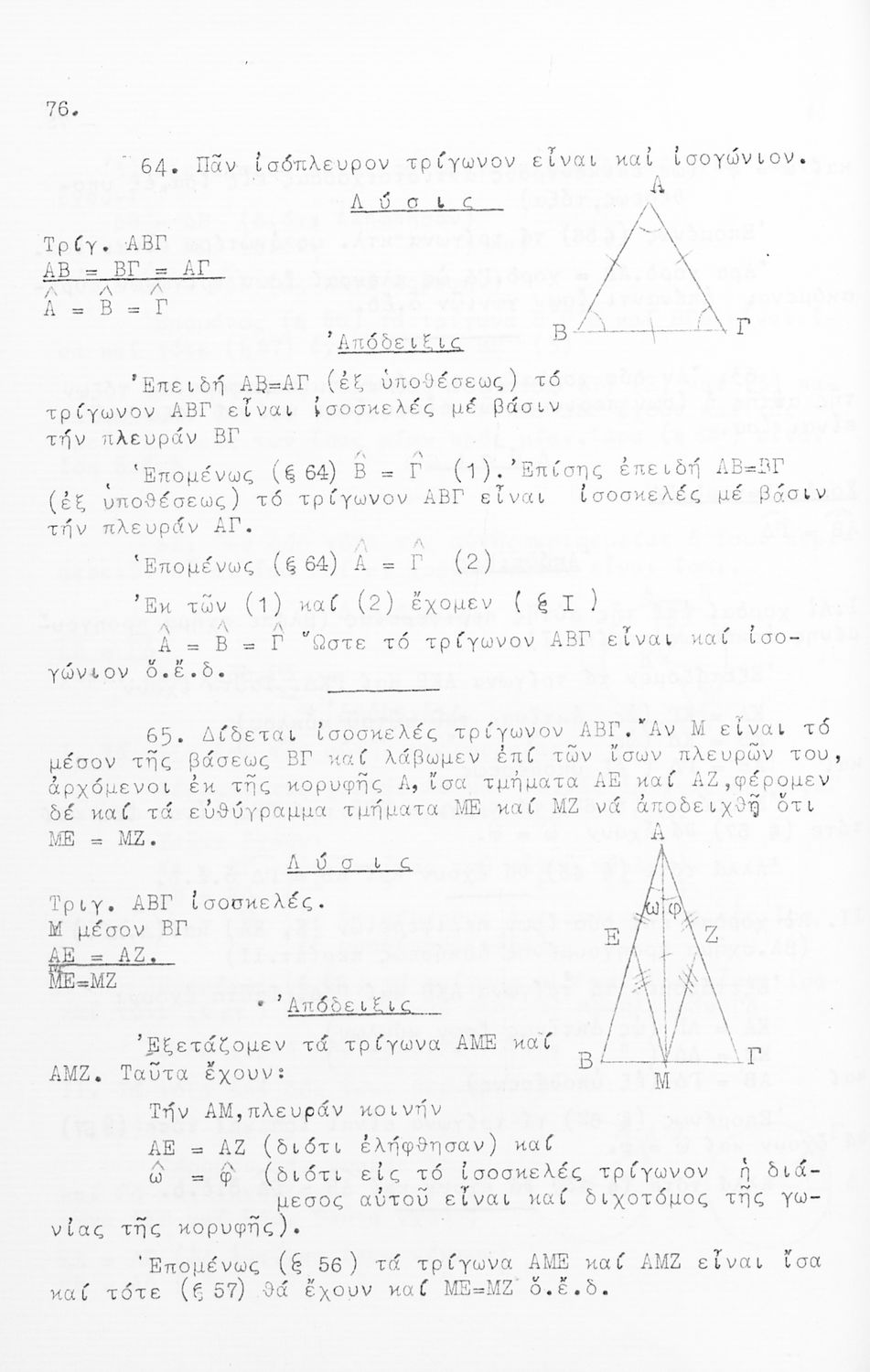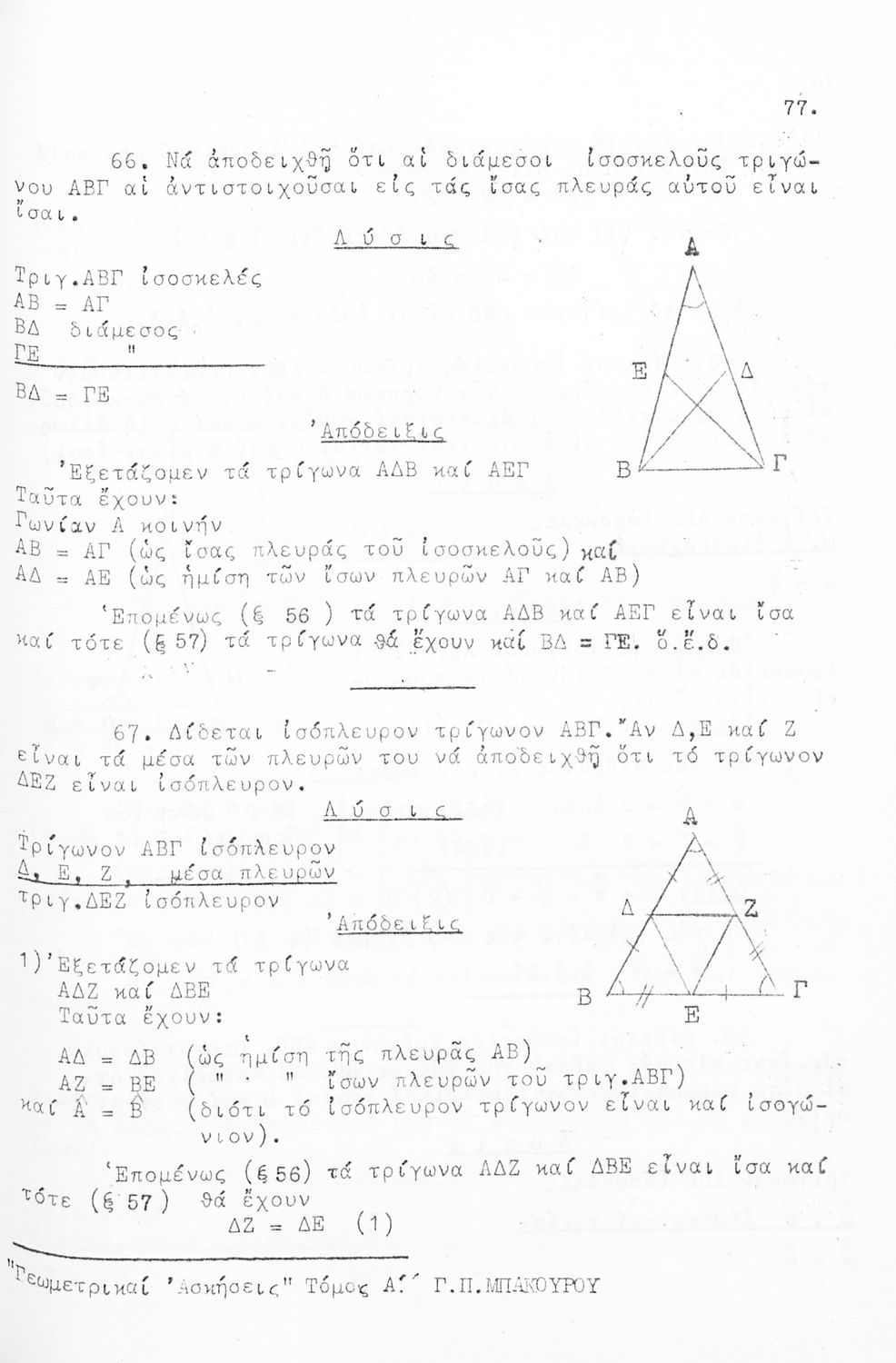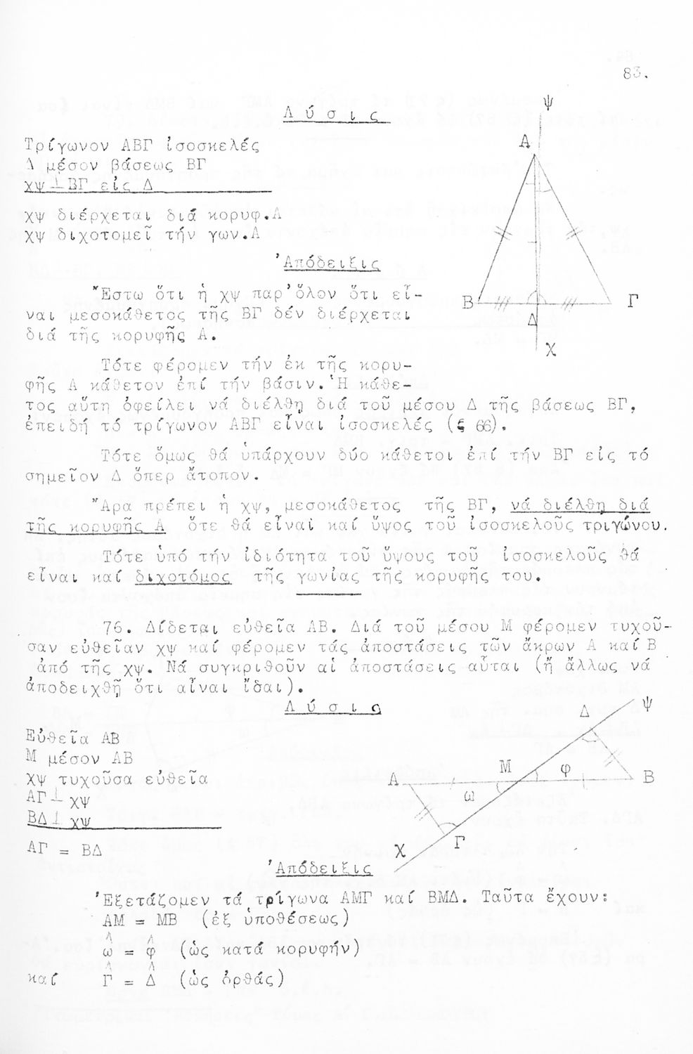 Βαθμίδα εκπαίδευσης: Δευτεροβάθμια Τάξη: Ε' Γυμνασίου Μάθημα: Μαθηματικά Γλώσσα: Καθαρεύουσα Παρουσίαση περιεχομένου: Μαθητικό βοήθημα Μαθηματικών της Ε΄ Γυμνασίου που περιέχει ασκήσεις γεωμετρίας και τις λύσεις τους. |