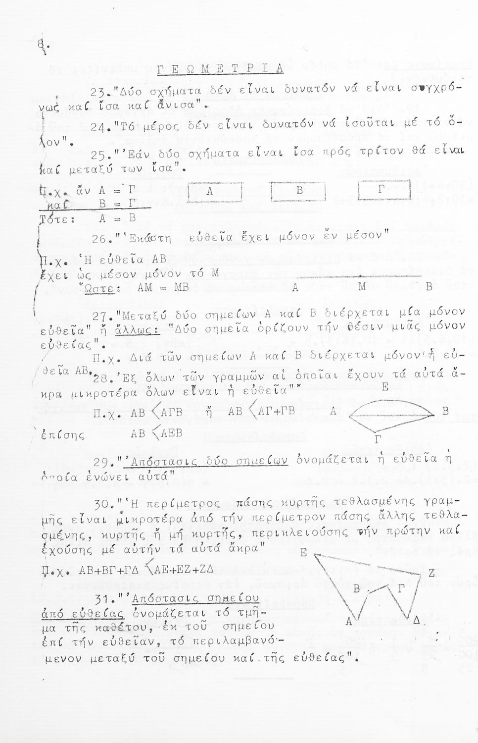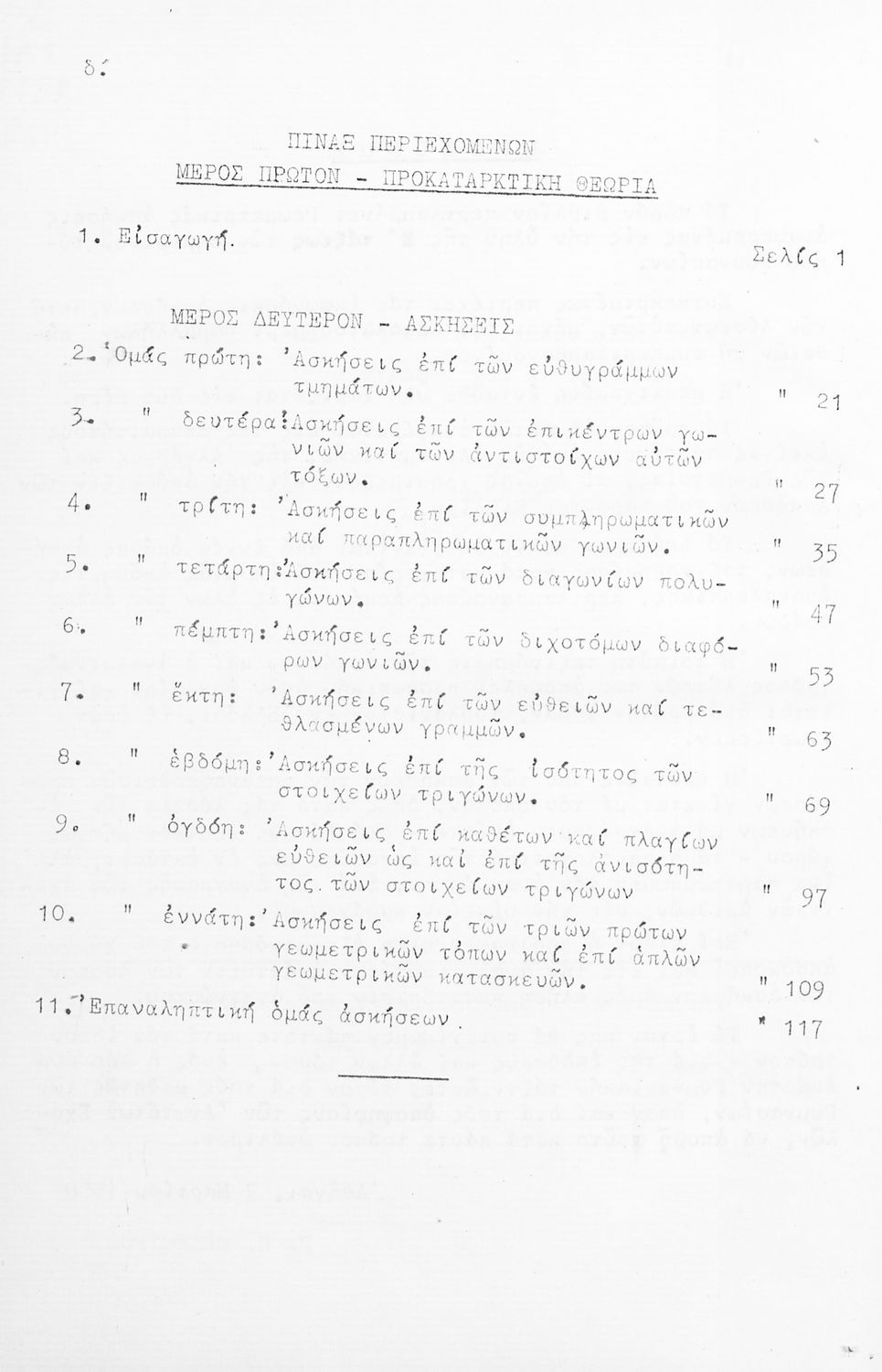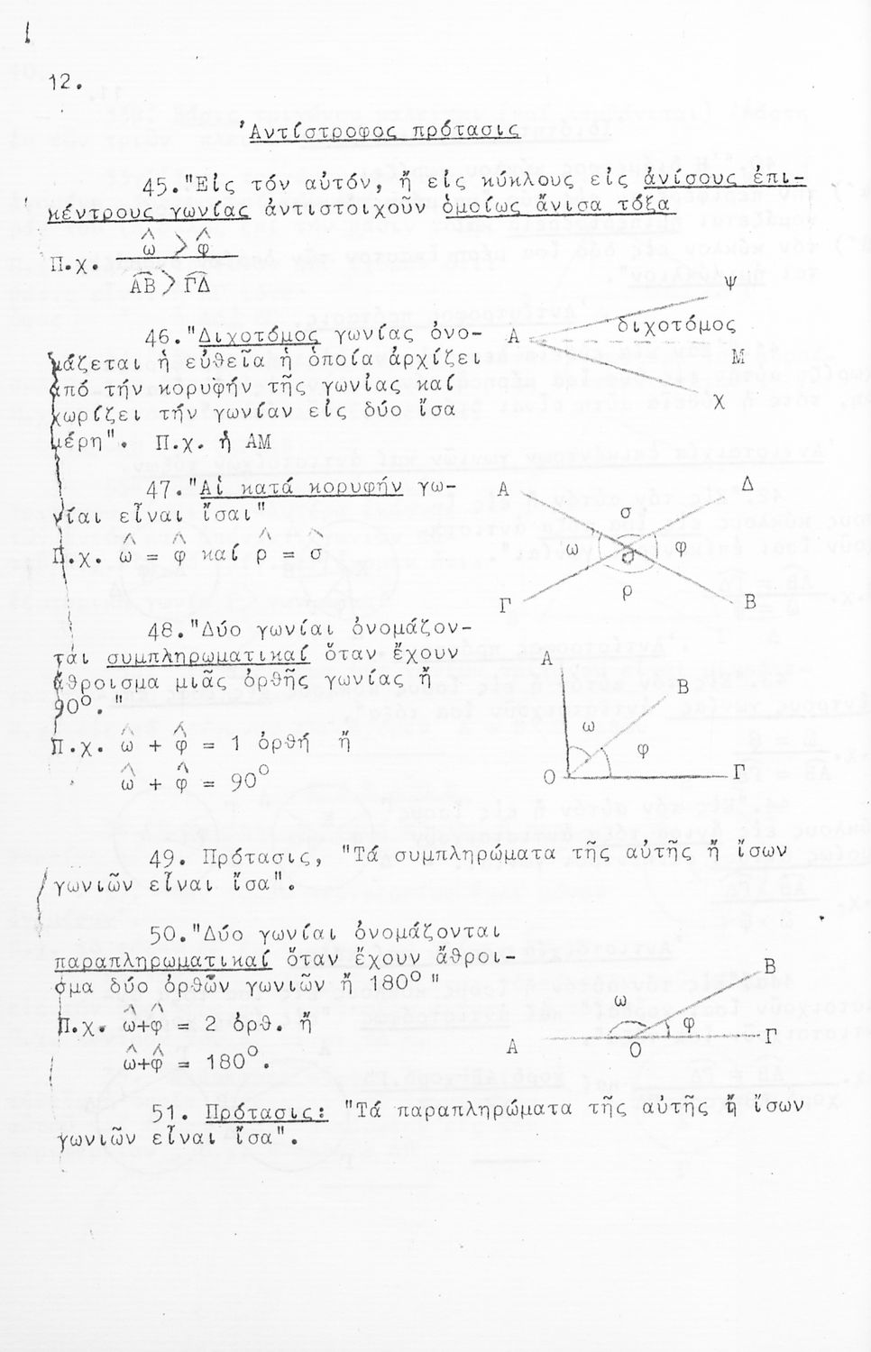 Βαθμίδα εκπαίδευσης: Δευτεροβάθμια Τάξη: Ε' Γυμνασίου Μάθημα: Μαθηματικά Γλώσσα: Καθαρεύουσα Παρουσίαση περιεχομένου: Μαθητικό βοήθημα Μαθηματικών της Ε΄ Γυμνασίου που περιέχει ασκήσεις γεωμετρίας και τις λύσεις τους. |