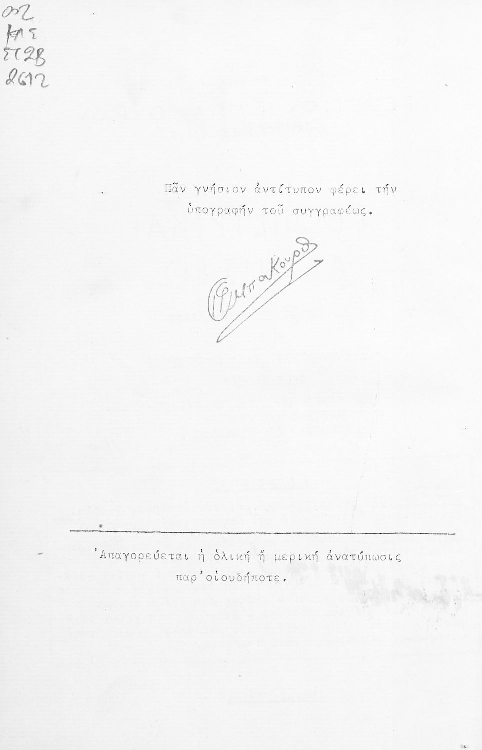 Έτος έκδοσης: 1958 Τόπος έκδοσης: Αθήνα Έτος έγκρισης: 1958 |