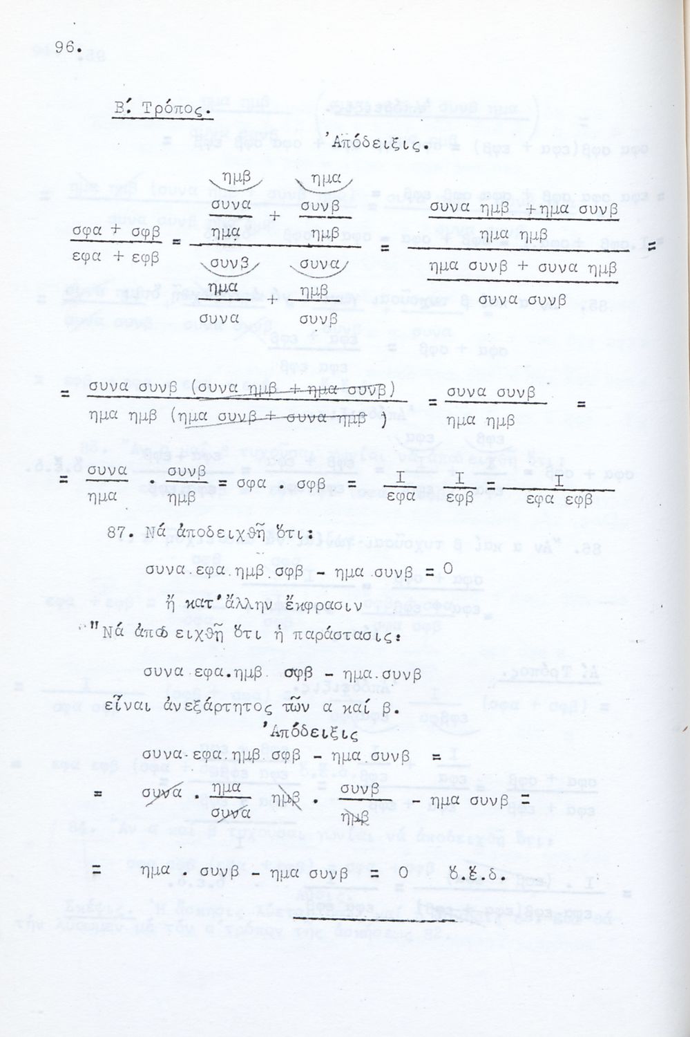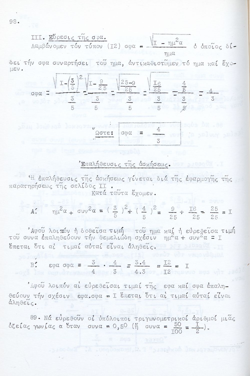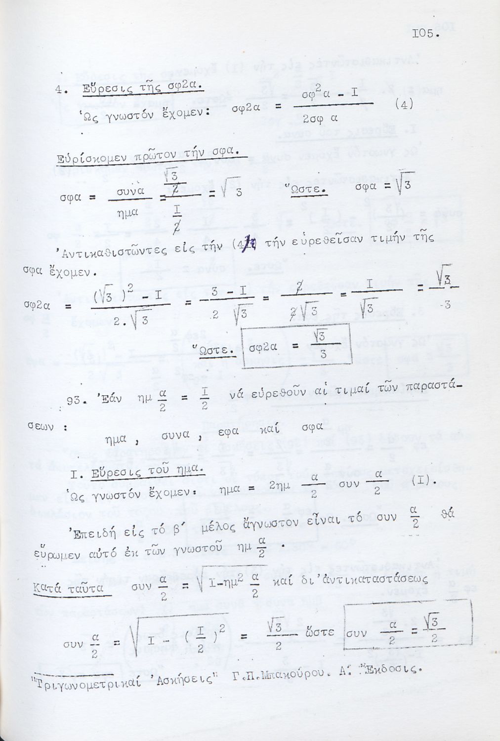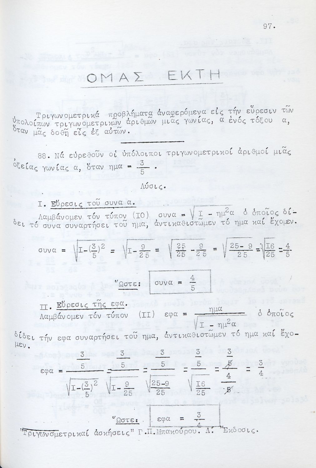 Τριγωνομετρικές Ασκήσεις λελυμέναι υποδειγματικώς πολλαί των οποίων δια δύο και τριών τρόπων και ταξινομημέναι κατά κατηγορίας προς χρήσιν πάντων των περί την τριγωνομετρίαν ασχολουμένων και ειδικώτερον των μαθητών των Γυμνασίων