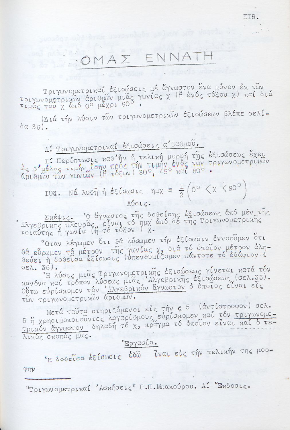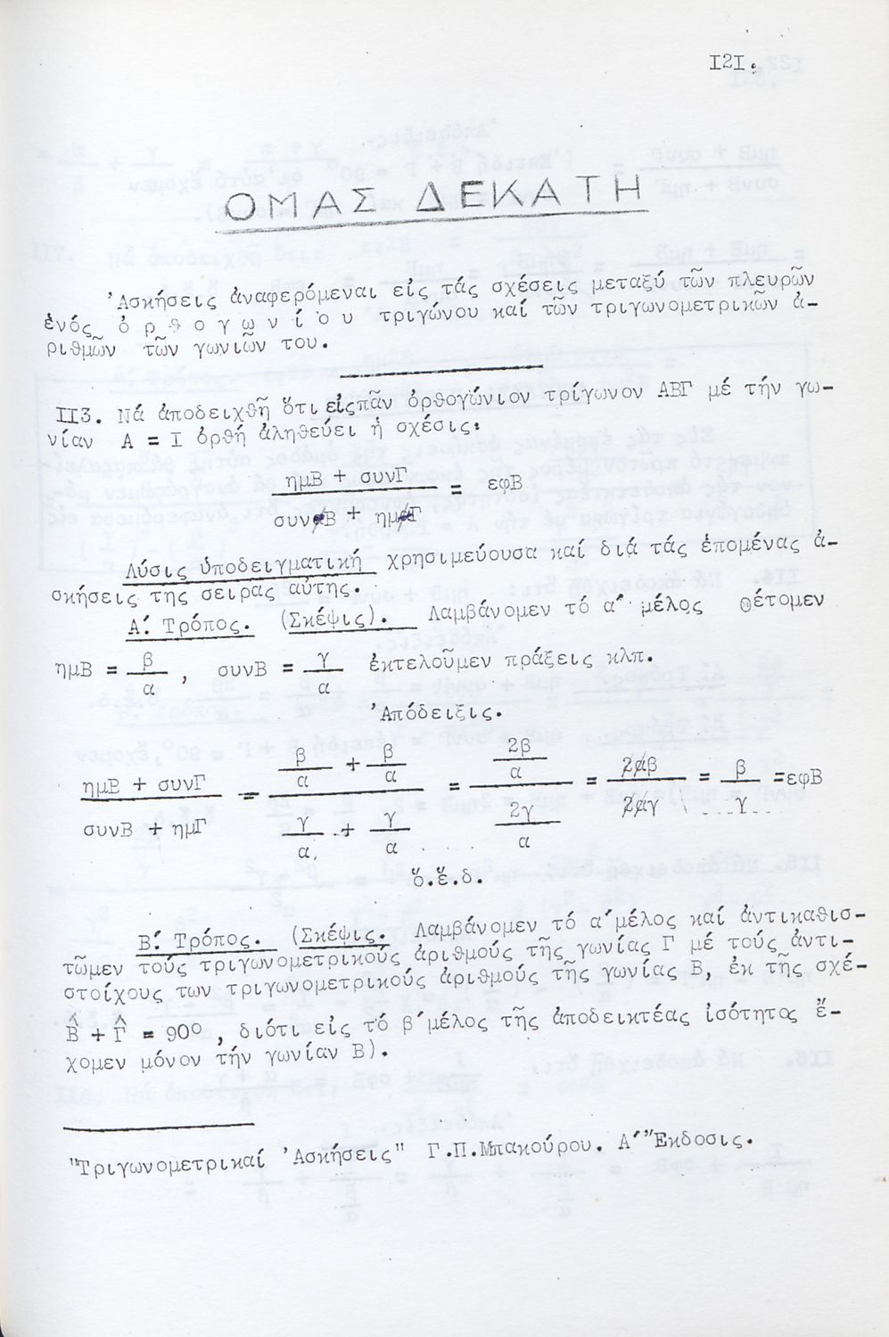 Τίτλος: Τριγωνομετρικές Ασκήσεις λελυμέναι υποδειγματικώς πολλαί των οποίων δια δύο και τριών τρόπων και ταξινομημέναι κατά κατηγορίας προς χρήσιν πάντων των περί την τριγωνομετρίαν ασχολουμένων και ειδικώτερον των μαθητών των Γυμνασίων