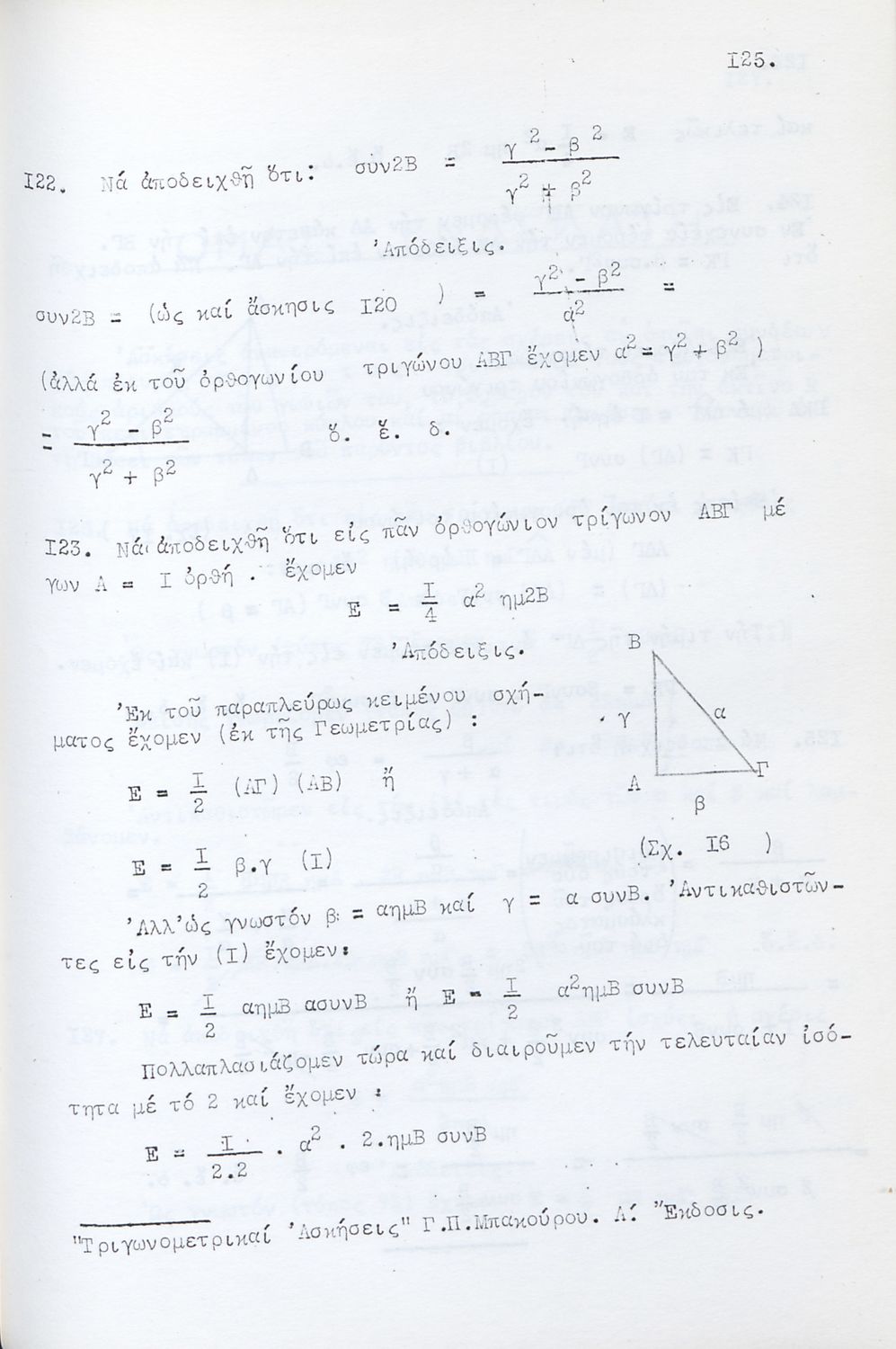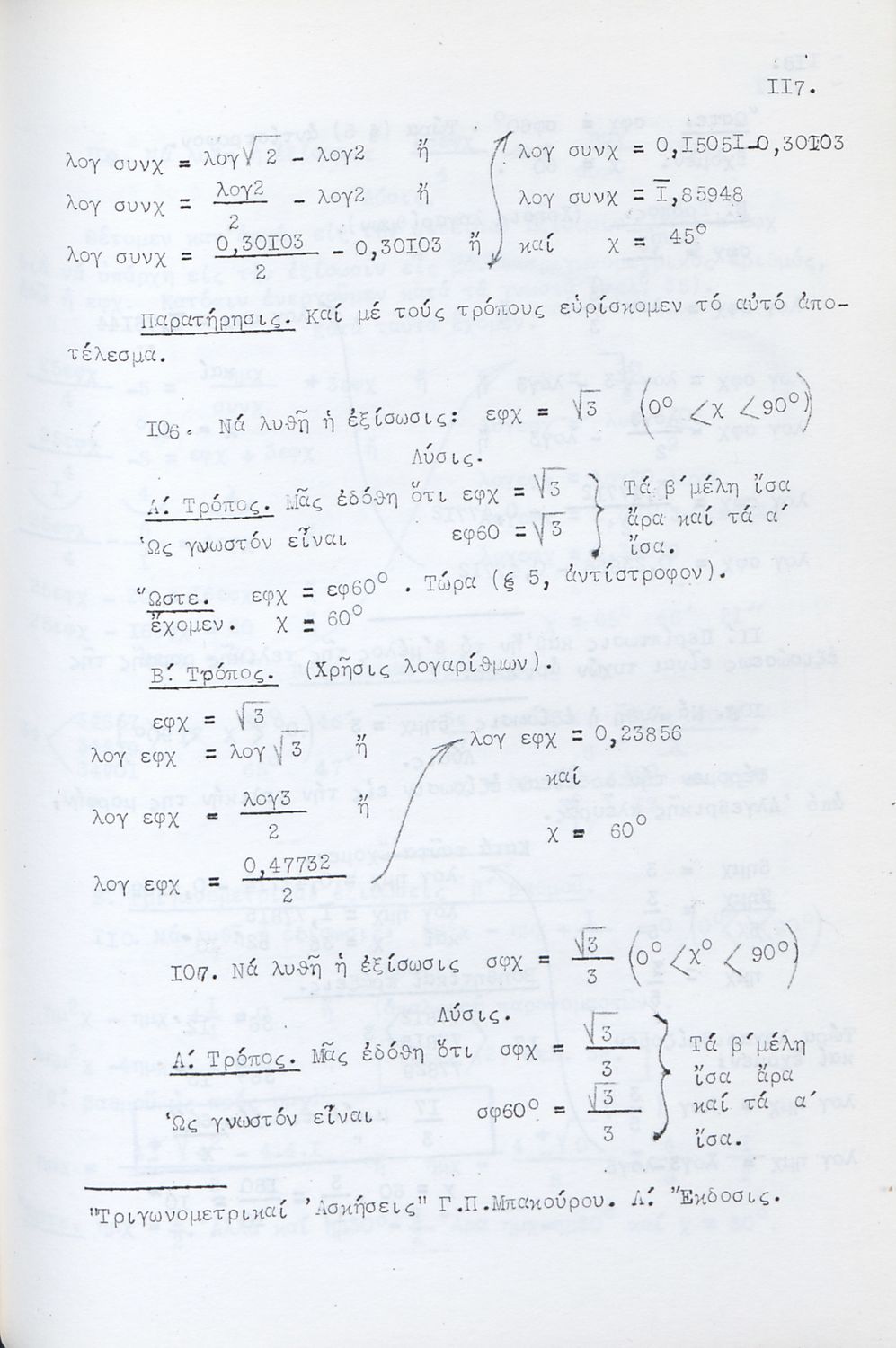 Τριγωνομετρικές Ασκήσεις λελυμέναι υποδειγματικώς πολλαί των οποίων δια δύο και τριών τρόπων και ταξινομημέναι κατά κατηγορίας προς χρήσιν πάντων των περί την τριγωνομετρίαν ασχολουμένων και ειδικώτερον των μαθητών των Γυμνασίων