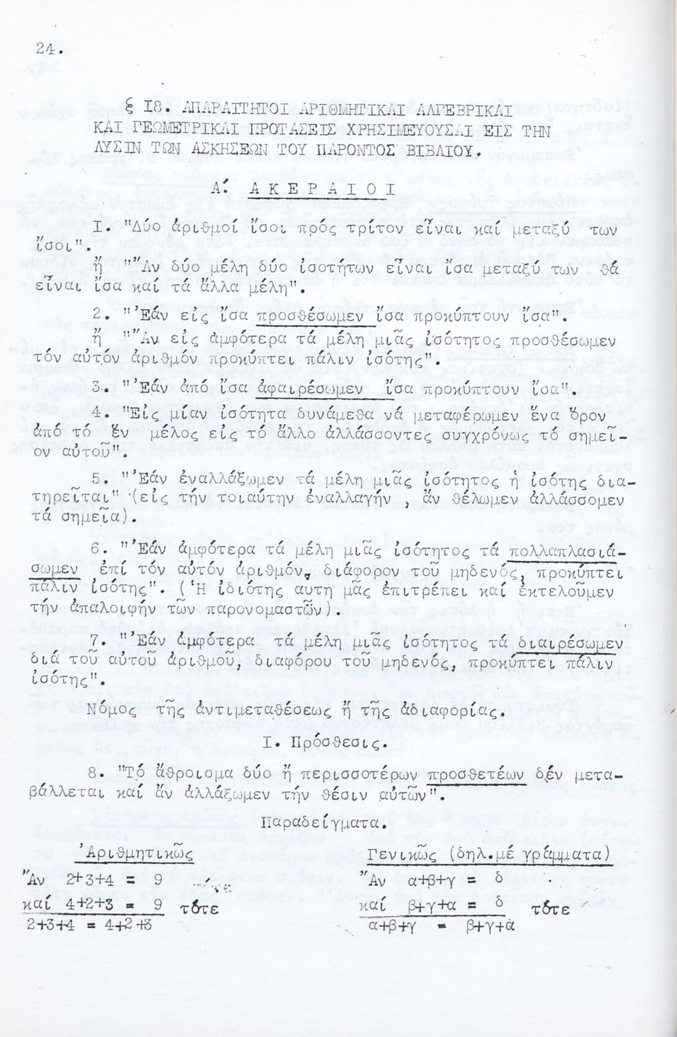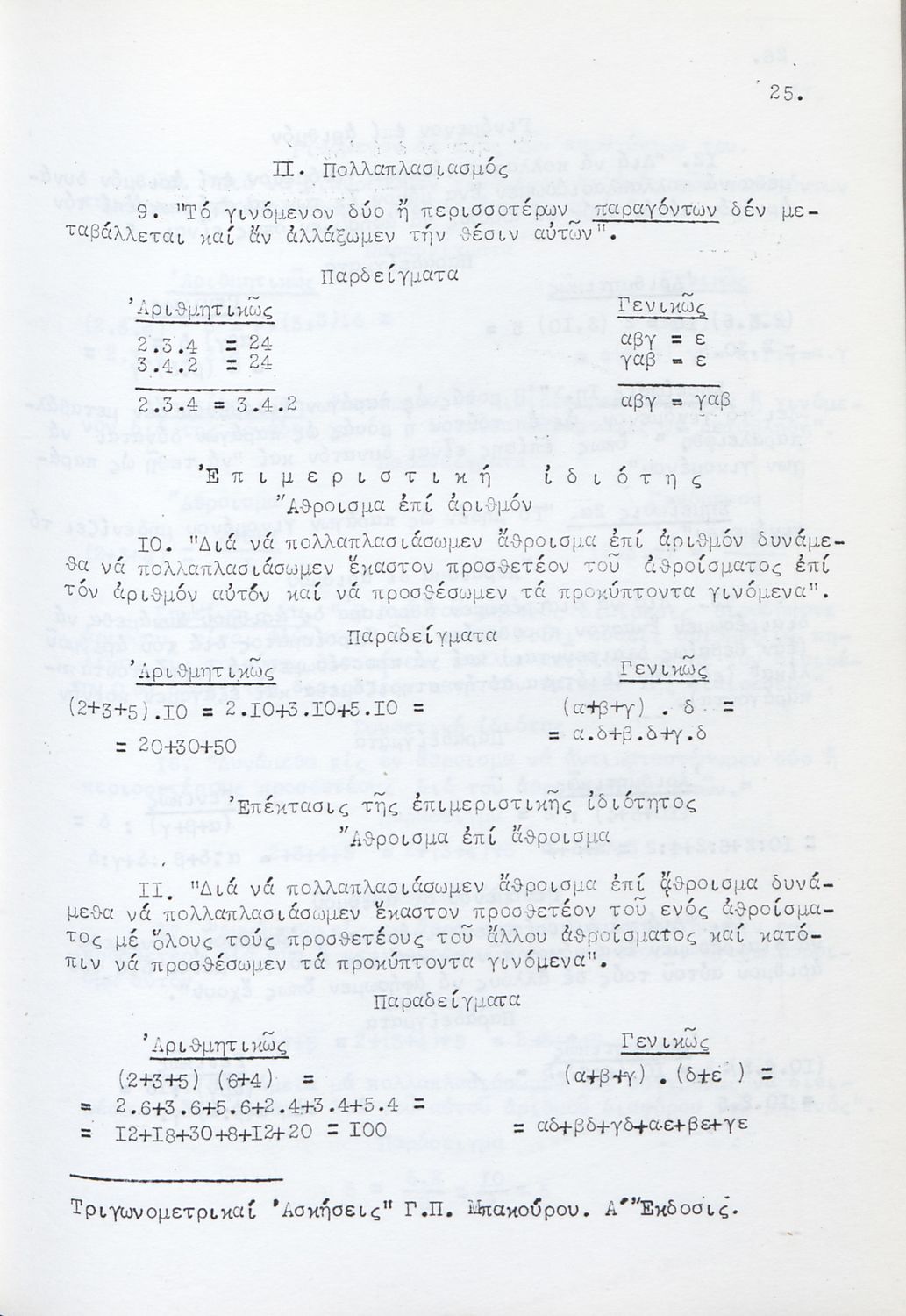 Μαθητικό βοήθημα για τους υποψηφίους Ανωτάτων Σχολών και ειδικότερα για τους μαθητές των Γυμνασίων. Το βιβλίο είναι χωρισμένο σε δύο μέρη. Στο πρώτο μέρος περιλαμβάνει αλγεβρική και γεωμετρική θεωρία για τη λύση των ασκήσεων ενώ στο δεύτερο μέρος περιλαμβάνει ασκήσεις σε ομάδες.