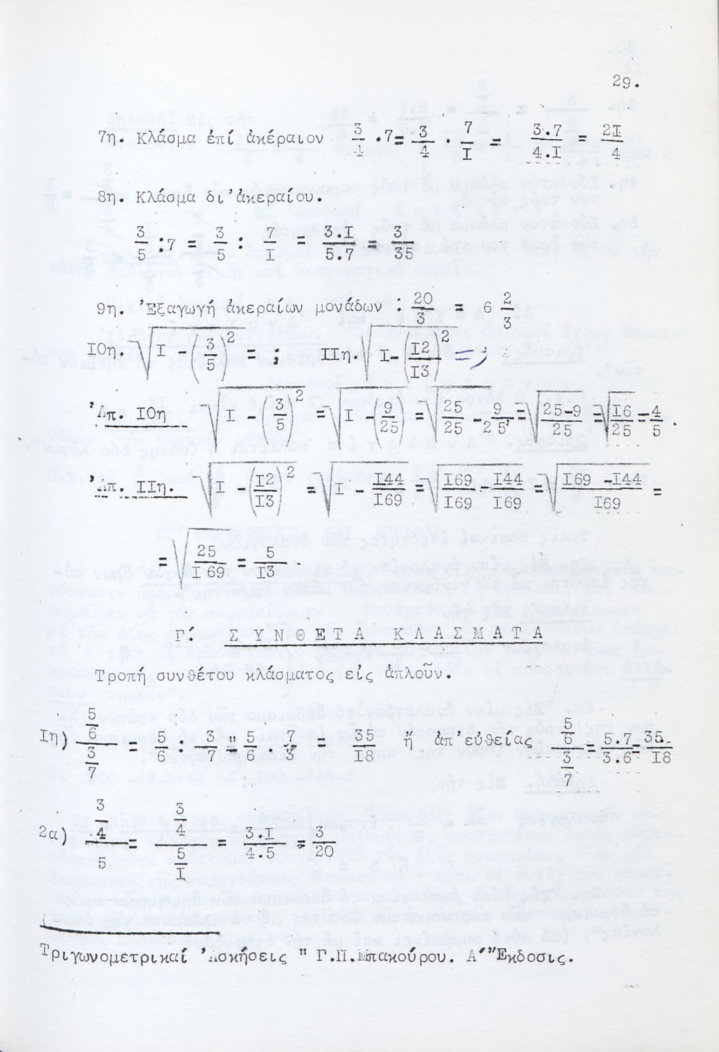 Κωδικός αναγνώρισης: 03-20632727 Τίτλος: Τριγωνομετρικές Ασκήσεις λελυμέναι υποδειγματικώς πολλαί των οποίων δια δύο και τριών τρόπων και ταξινομημέναι κατά κατηγορίας προς χρήσιν πάντων των περί την τριγωνομετρίαν ασχολουμένων και ειδικώτερον των μαθητών των Γυμνασίων Συγγραφέας: Γεώργιος Π. Μπακούρος Μέγεθος και υπόστρωμα: Μαθητικό βοήθημα, σκληρό εξώφυλλο, 178 σελίδες. |