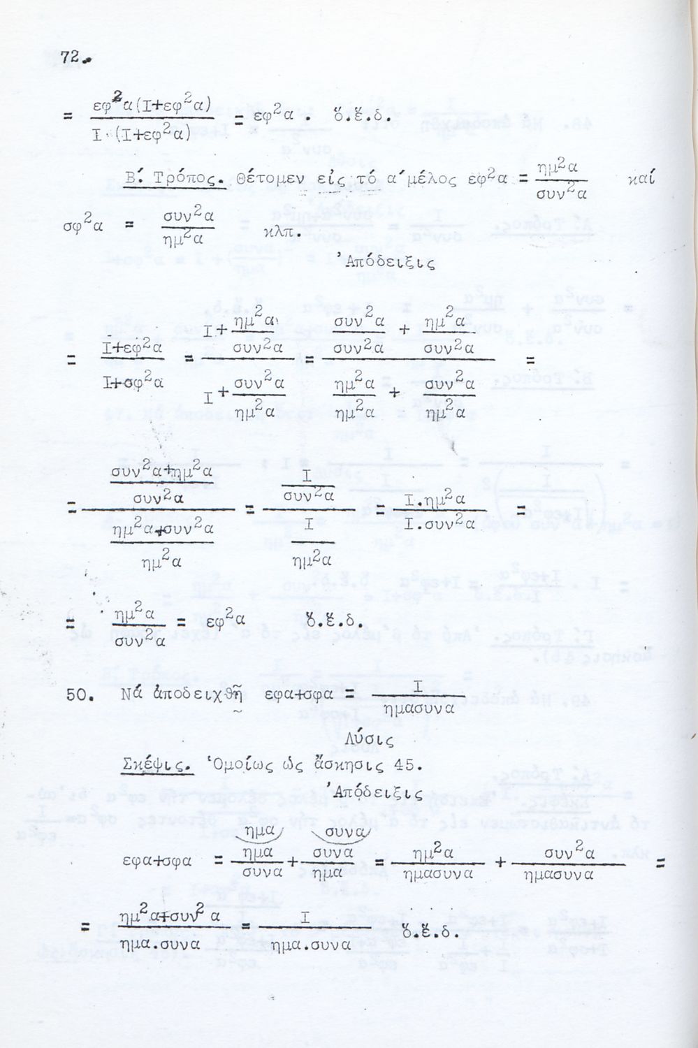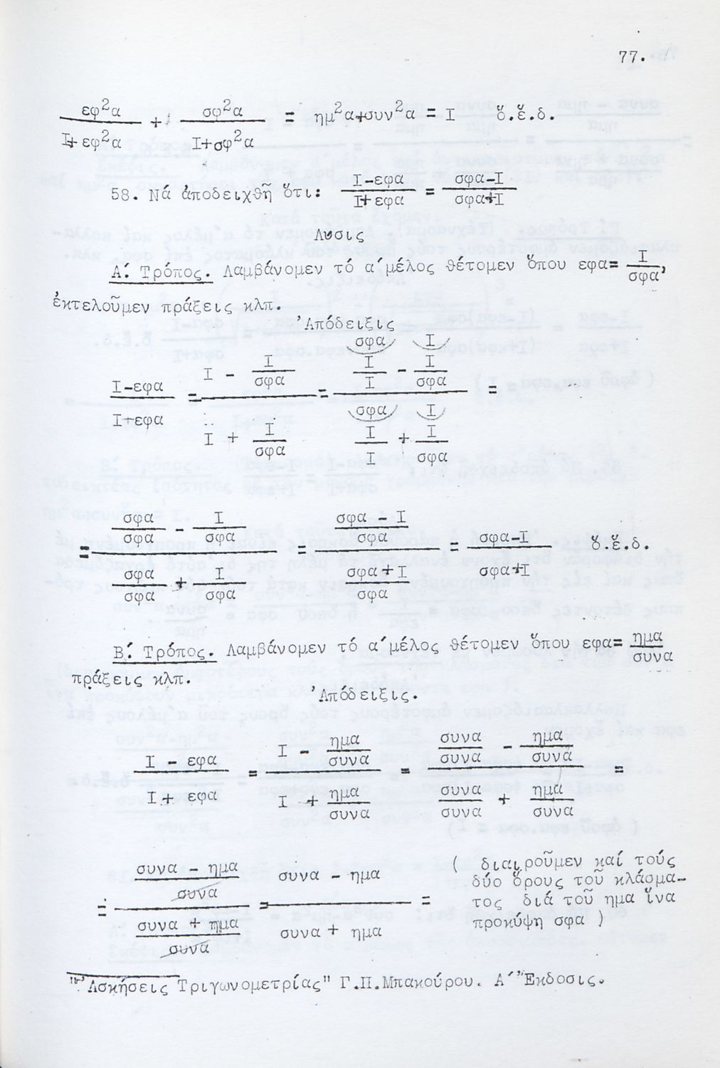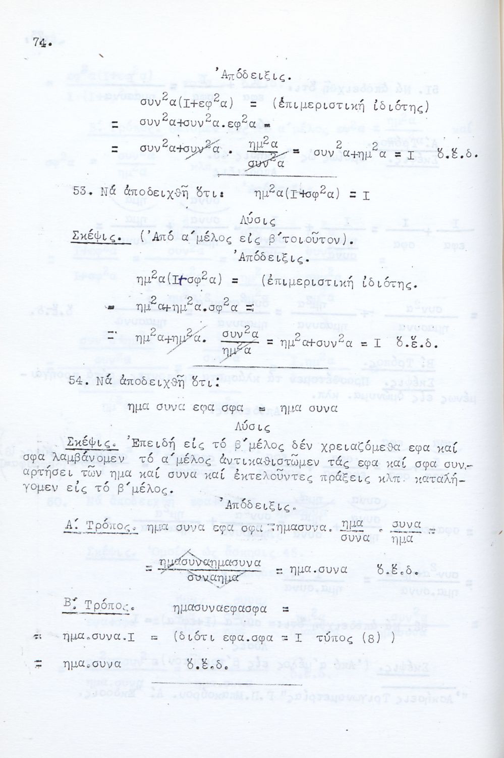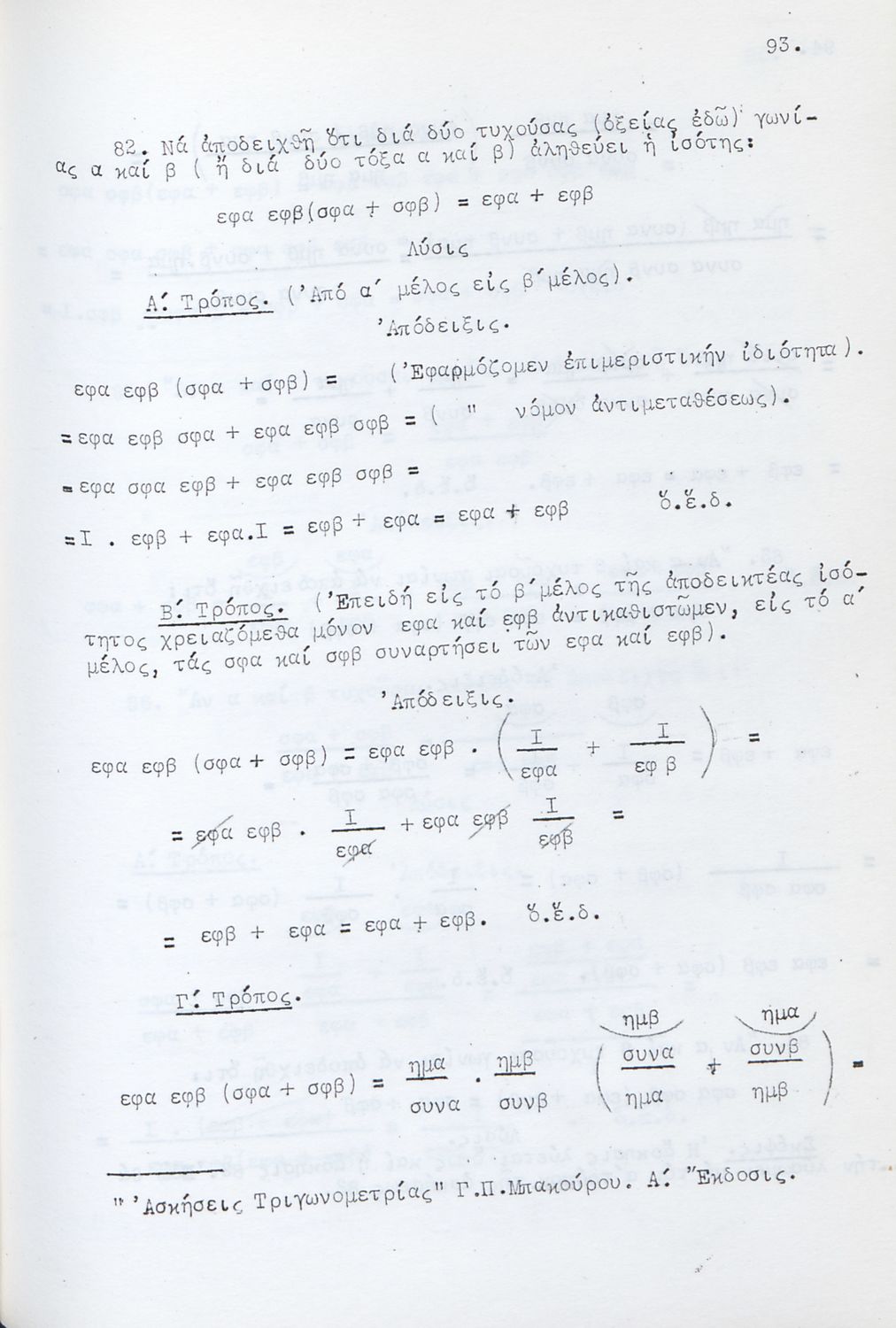 LDR 01553 2200193 4500 035 ## _a03-20632727 040 ## _aΒιβλιοθήκη της Βουλής των Ελλήνων 041 ## _ael 100 ## _aΓεώργιος Π. Μπακούρος 110 ## _a20632727 245 0# _aΤριγωνομετρικές Ασκήσεις λελυμέναι υποδειγματικώς πολλαί των οποίων δια δύο και τριών τρόπων και ταξινομημέναι κατά κατηγορίας προς χρήσιν πάντων των περί την τριγωνομετρίαν ασχολουμένων και ειδικώτερον των μαθητών των Γυμνασίων 260 ## _aΑθήνα _c1958 300 ## _a178 520 ## _aΜαθητικό βοήθημα για τους υποψηφίους Ανωτάτων Σχολών και ειδικότερα για τους μαθητές των Γυμνασίων. Το βιβλίο είναι χωρισμένο σε δύο μέρη. Στο πρώτο μέρος περιλαμβάνει αλγεβρική και γεωμετρική θεωρία για τη λύση των ασκήσεων ενώ στο δεύτερο μέρος περιλαμβάνει ασκήσεις σε ομάδες. 521 ## _aΓυμνάσιο 522 ## _aΕλλάδα 546 ## _aΚαθαρεύουσα 563 ## _aΣκληρό Εξώφυλλο 650 #4 _aΑσκήσεις _aΜαθητικό βοήθημα _aΤριγωνομετρία _aΤριγωνομετρικές εξισώσεις