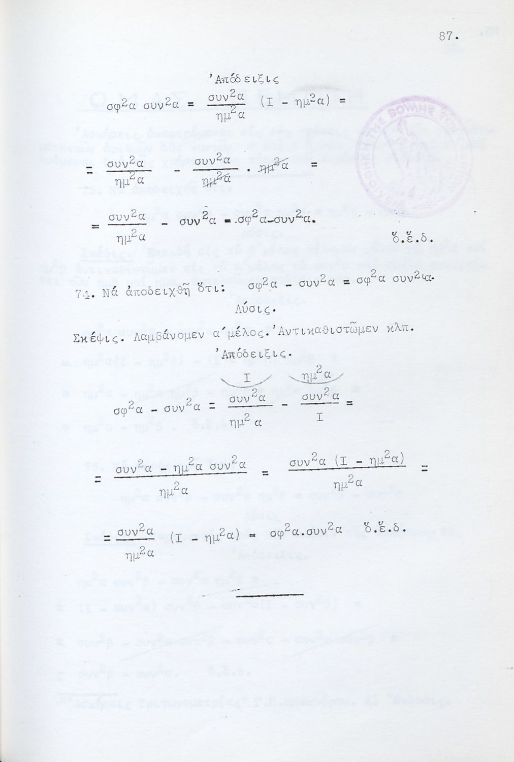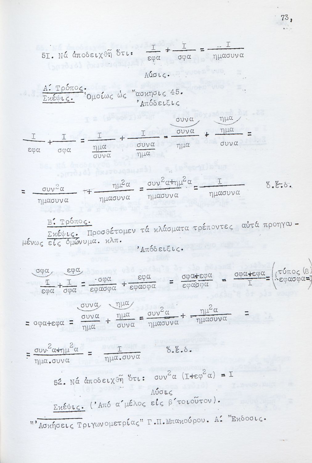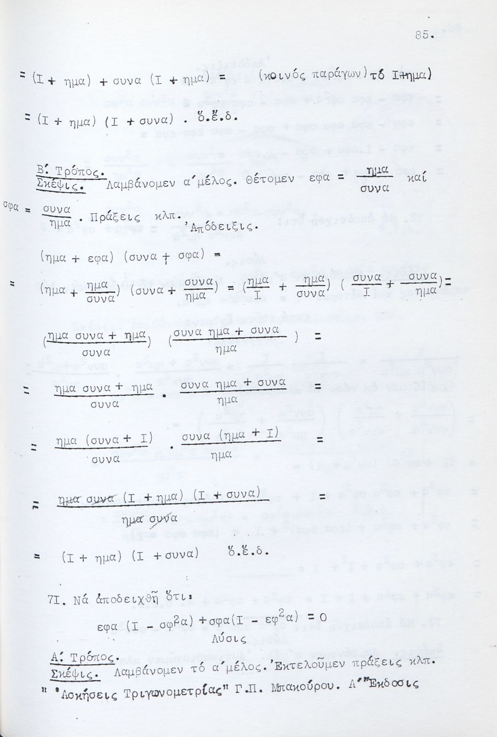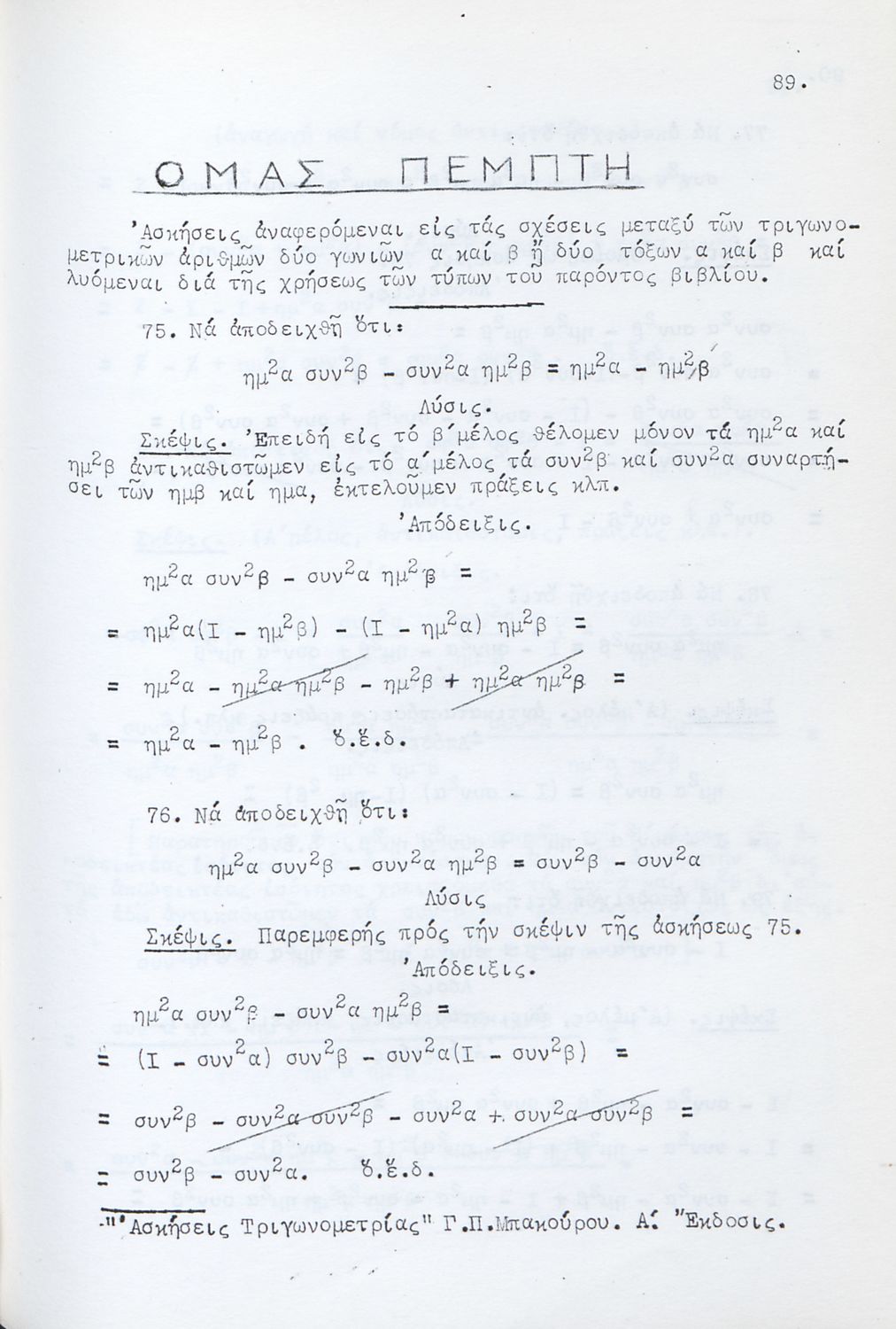 Μαθητικό βοήθημα για τους υποψηφίους Ανωτάτων Σχολών και ειδικότερα για τους μαθητές των Γυμνασίων. Το βιβλίο είναι χωρισμένο σε δύο μέρη. Στο πρώτο μέρος περιλαμβάνει αλγεβρική και γεωμετρική θεωρία για τη λύση των ασκήσεων ενώ στο δεύτερο μέρος περιλαμβάνει ασκήσεις σε ομάδες.