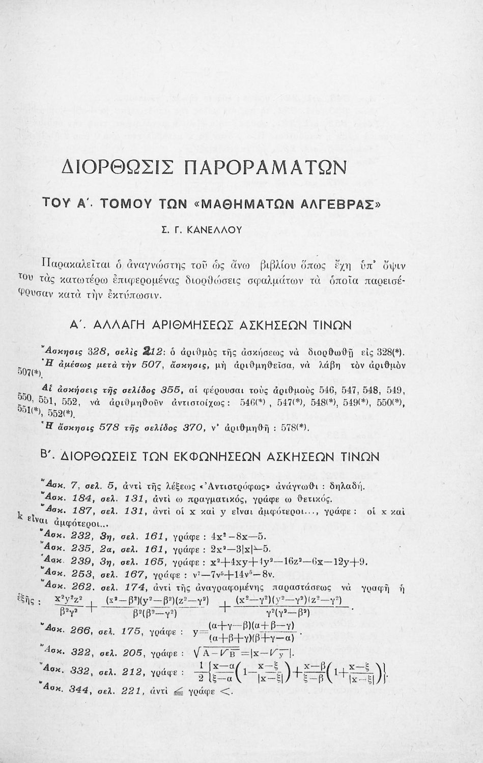 520 ## _aΜαθητικό βοήθημα Άλγεβρας για τους υποψηφίους των Ανωτάτων Σχολών που περιέχει τα θεμελιώδη μέρη της Άλγεβρας καθώς και τις διαφορετικές μορφές Αλγεβρικού λογισμού μεταξύ πραγματικών αριθμών.