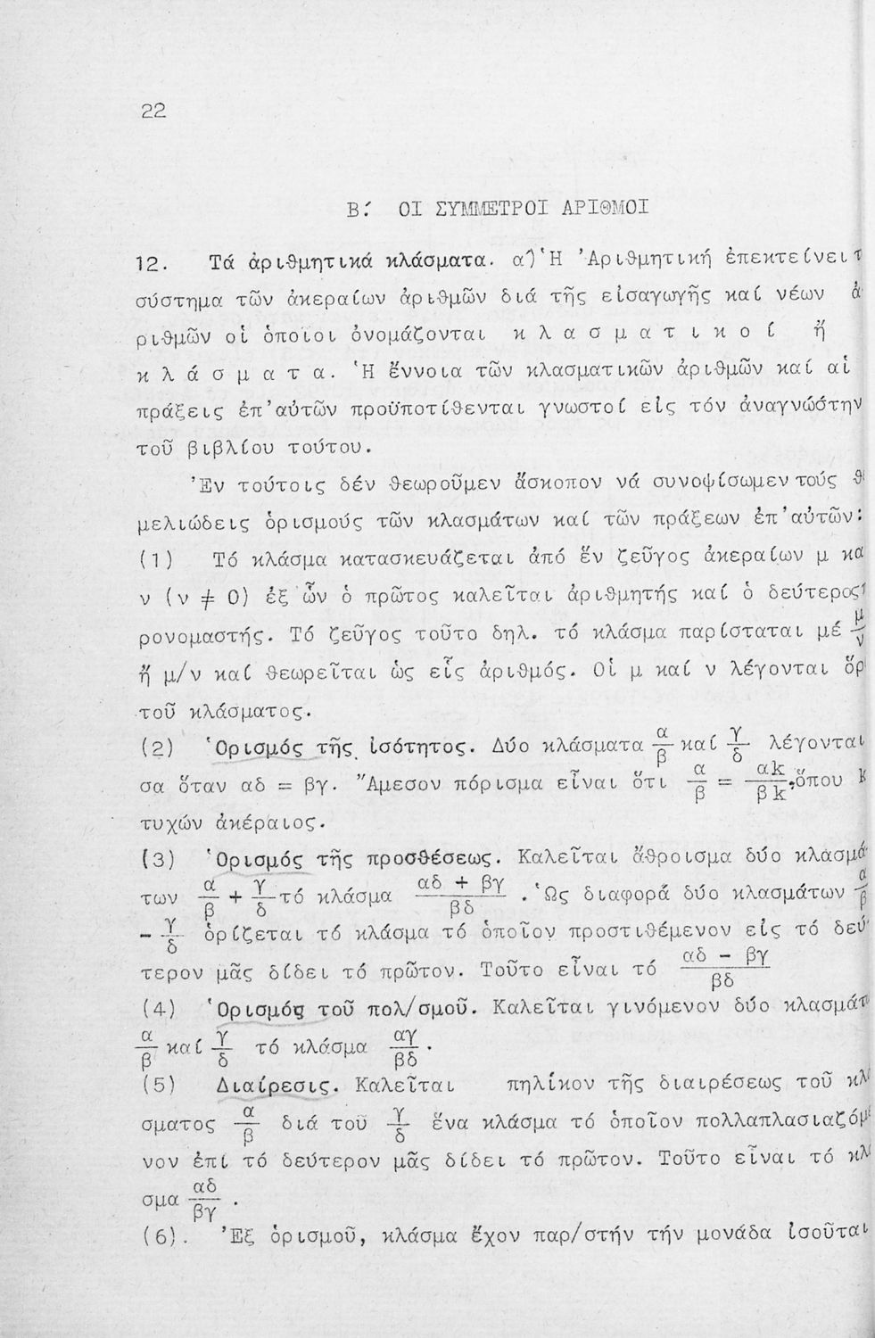 Σχολικό εγχειρίδιο Άλγεβρας για τις Δ΄ και Ε΄ Εξαταξίου Γυμνασίου χωρισμένο σε θεωρία και ασκήσεις που εστιάζει στις αλγεβρικές πράξεις και παραστάσεις, στις εξισώσεις και στις ρίζες.
