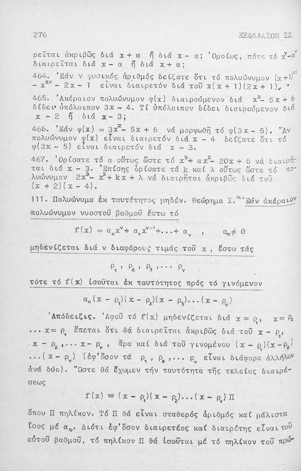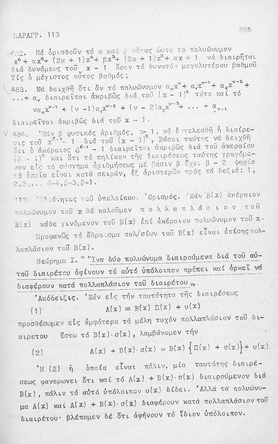 Παιδαγωγικό βοήθημα Άλγεβρας για τους υποψήφιους του Ε. Μ. Πολυτεχνείου που αναλύει τις βασικές έννοιες και αρχές της Άλγεβρας. Περιέχει και ασκήσεις.