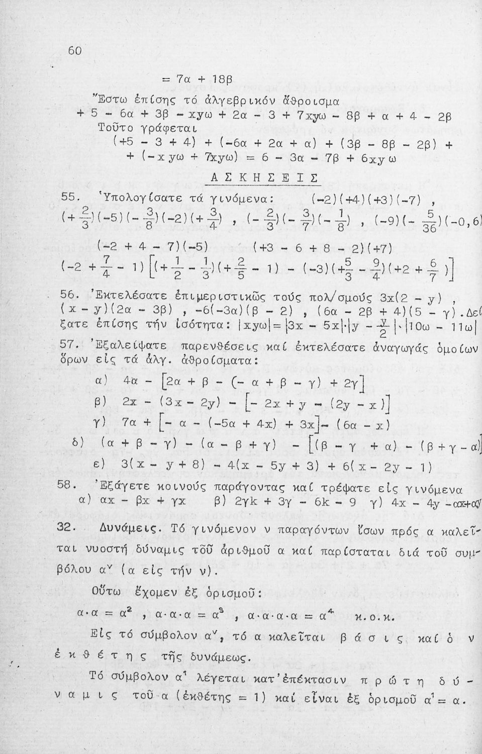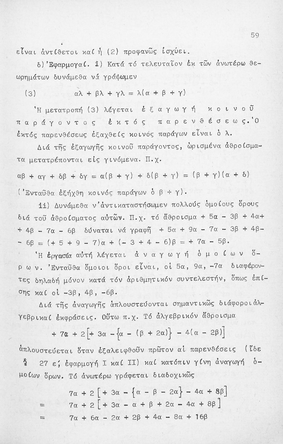 Σχολικό εγχειρίδιο Άλγεβρας για τις Δ΄ και Ε΄ Εξαταξίου Γυμνασίου χωρισμένο σε θεωρία και ασκήσεις που εστιάζει στις αλγεβρικές πράξεις και παραστάσεις, στις εξισώσεις και στις ρίζες.