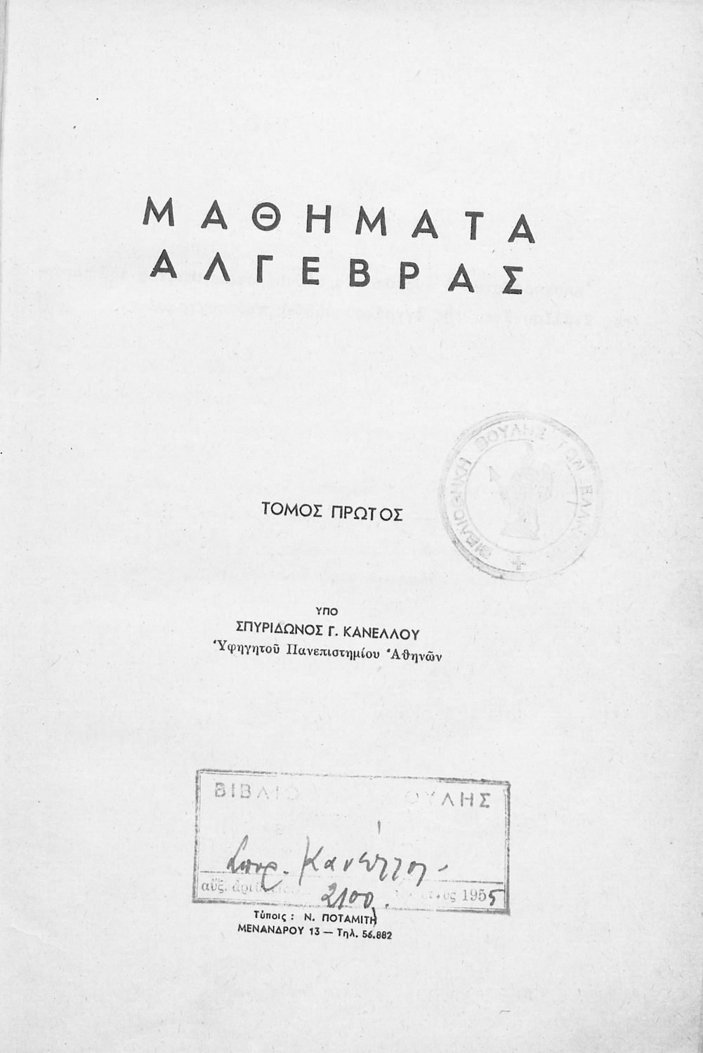 Μαθητικό βοήθημα Άλγεβρας για τους υποψηφίους των Ανωτάτων Σχολών που περιέχει τα θεμελιώδη μέρη της Άλγεβρας καθώς και τις διαφορετικές μορφές Αλγεβρικού λογισμού μεταξύ πραγματικών αριθμών.