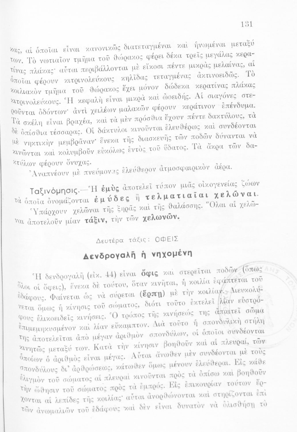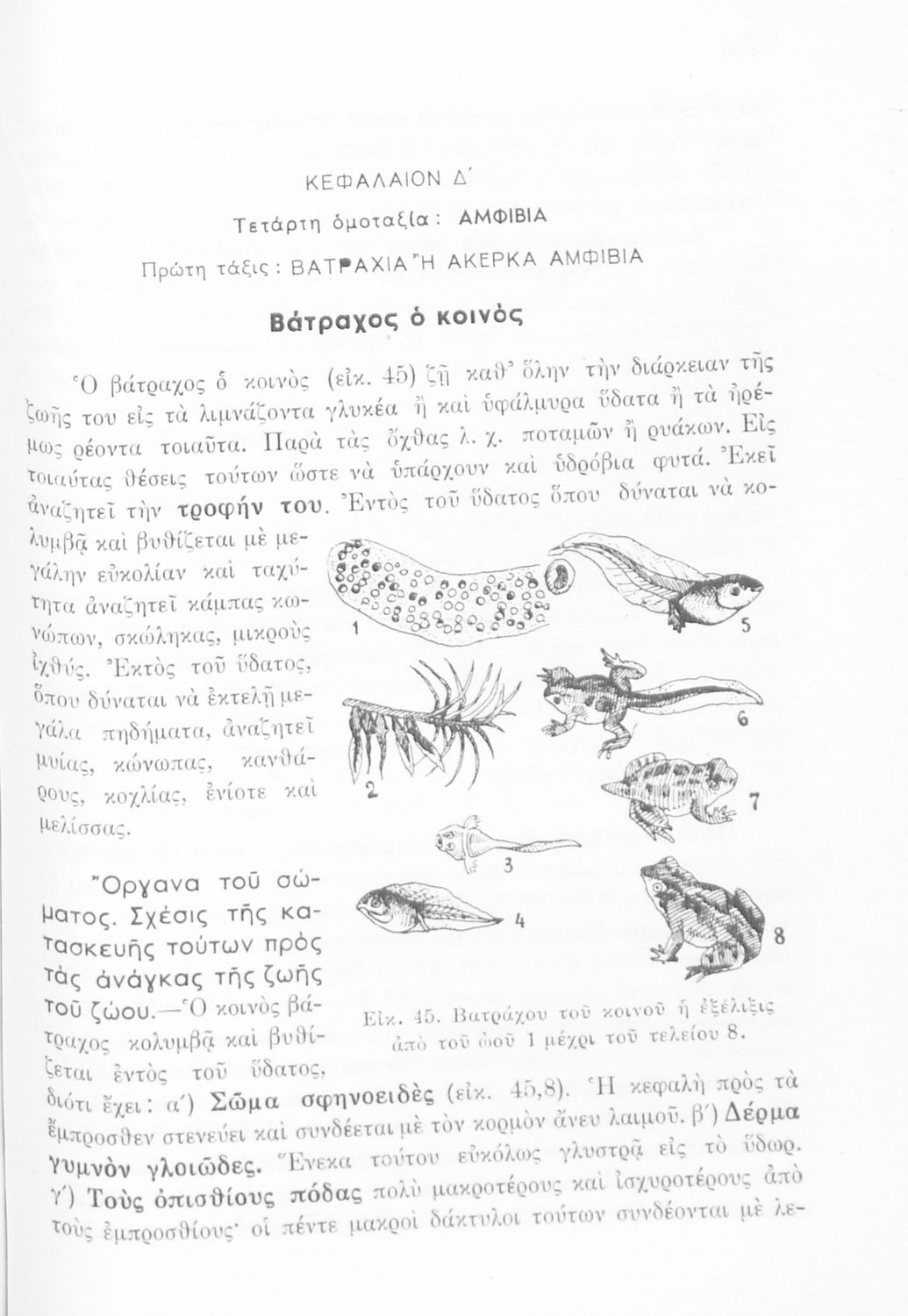 Σχολικό εγχειρίδιο Ζωολογίας/Φυτολογίας για τα Γυμνάσια και Αστικά Σχολεία που παρουσιάζει διάφορα ζώα και φυτά ανάλογα με τη συνομοταξία στην οποία ανήκουν.