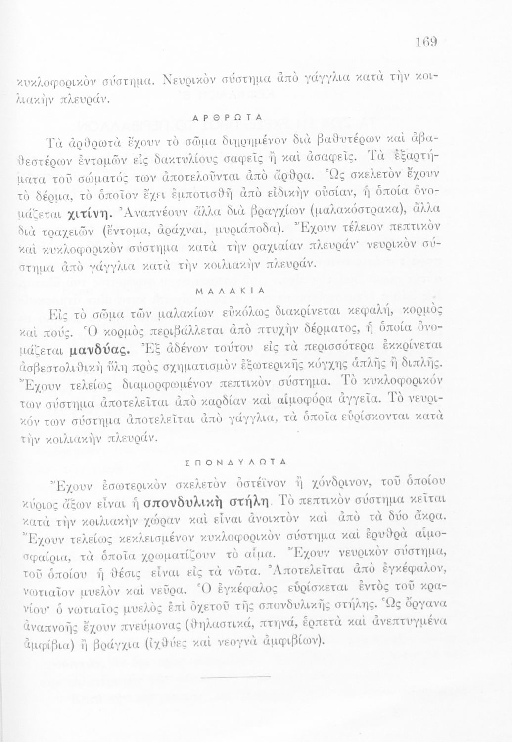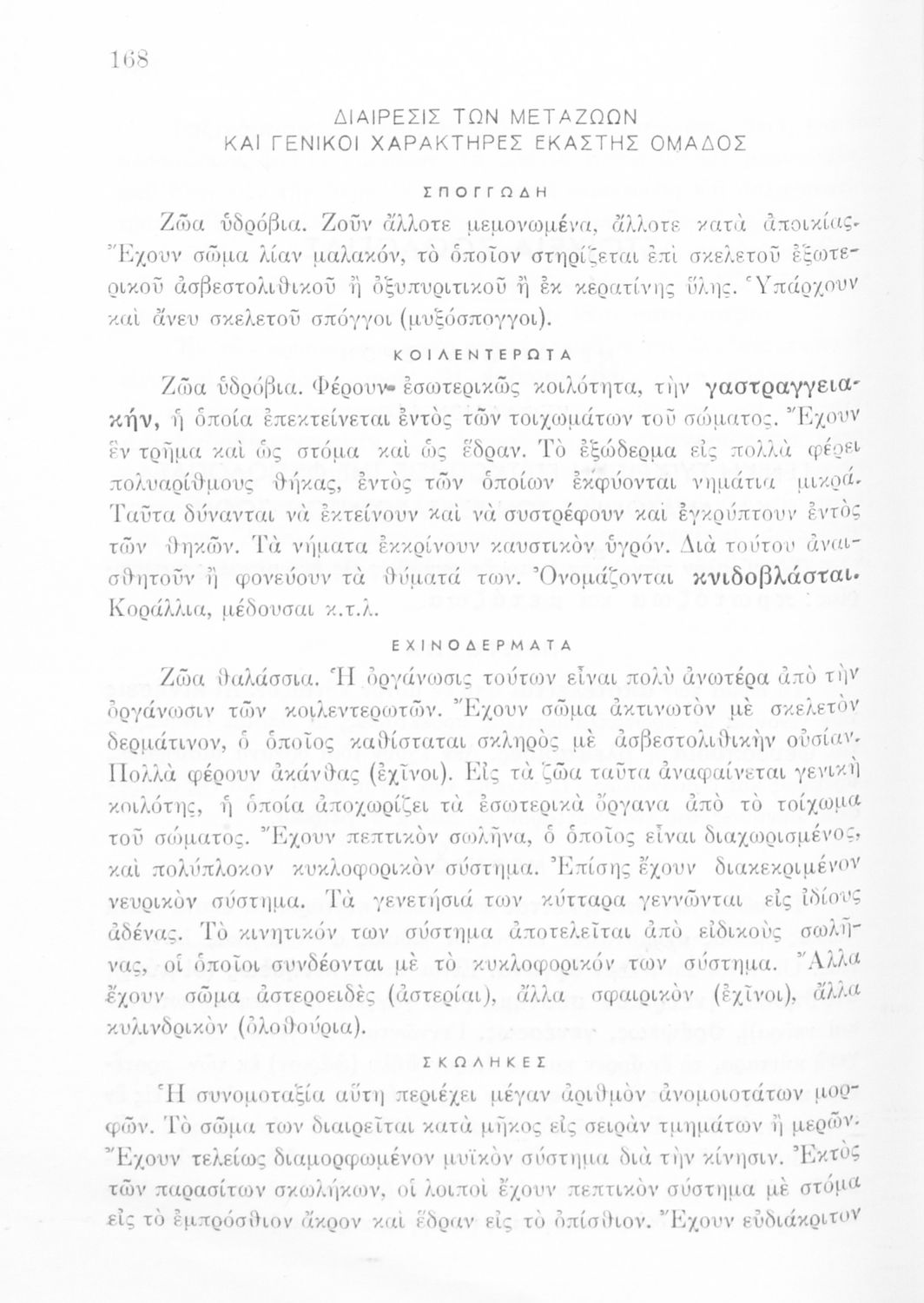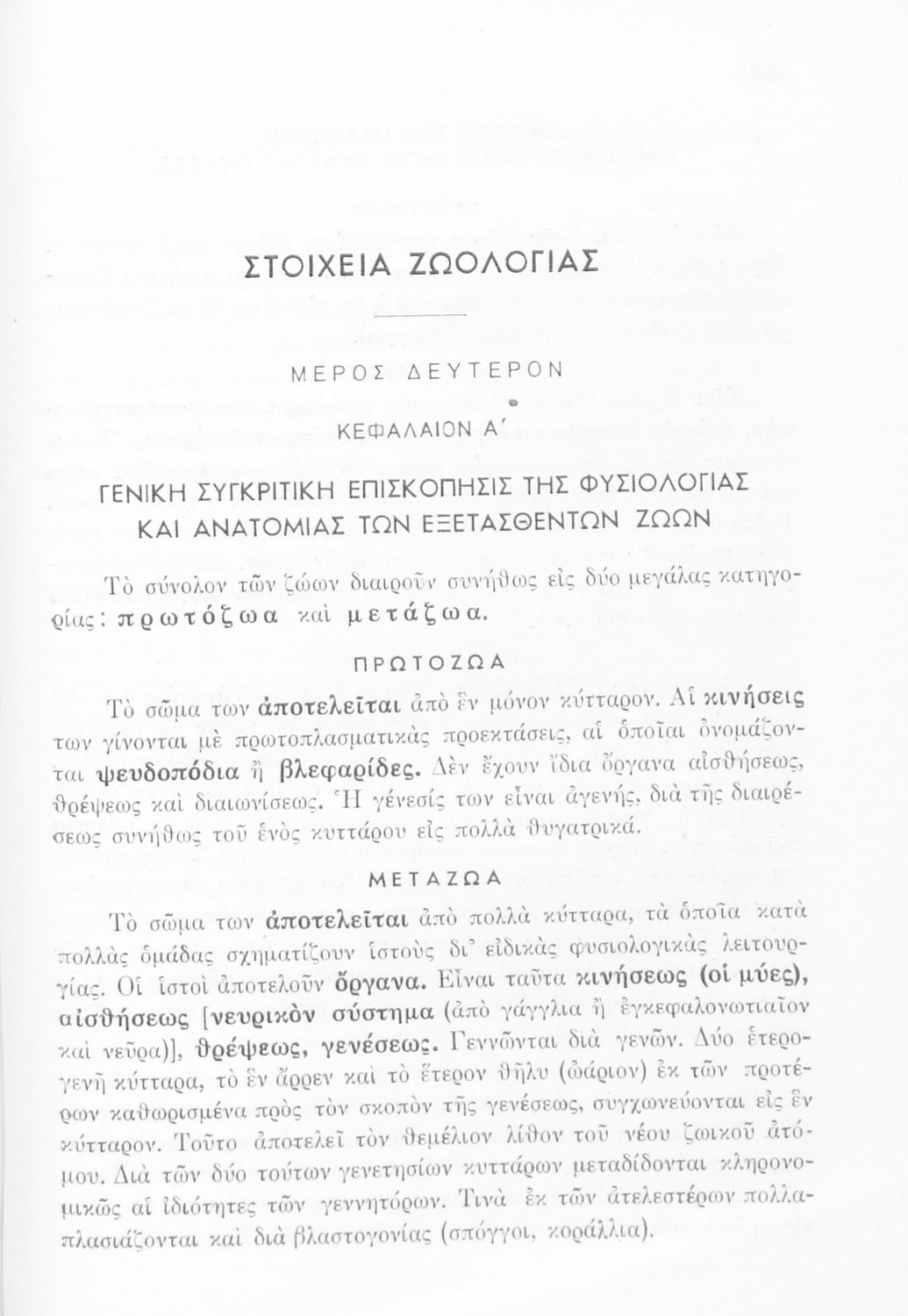Σχολικό εγχειρίδιο Ζωολογίας/Φυτολογίας για τα Γυμνάσια και Αστικά Σχολεία που παρουσιάζει διάφορα ζώα και φυτά ανάλογα με τη συνομοταξία στην οποία ανήκουν.