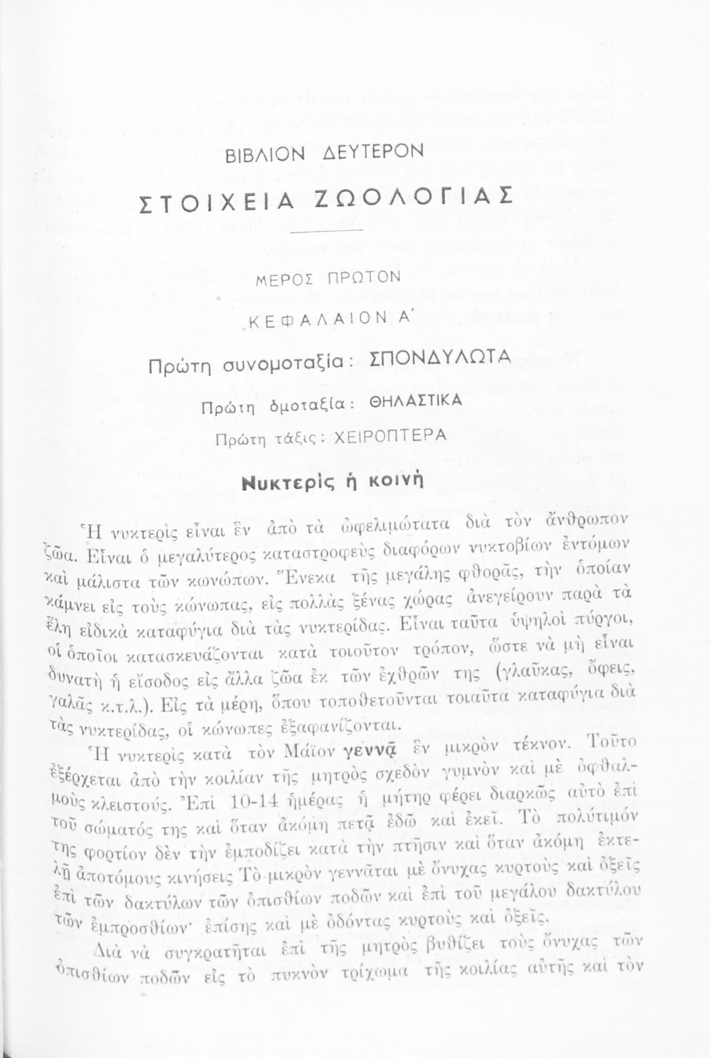 Σχολικό εγχειρίδιο Φυτολογίας - Ζωολογίας για τους μαθητές της Γ' Τάξης Γυμνασίου, και της Β' Τάξης Αστικών Σχολείων. Περιέχει μια εισαγωγή της Φυτολογίας και της Ζωολογίας. Χωρίζεται σε δύο μέρη. Στο πρώτο μέρος παρουσιάζει μια επισκόπηση των διαφορετικών φυτών όπως είναι τα σπερματόφυτα και τα σποριόφυτα. Στο δεύτερο παρουσιάζει τα διαφορετικά είδη των ζώων τα θηλαστικά, τα μαλάκια, τα πτηνά και τα ερπετά.