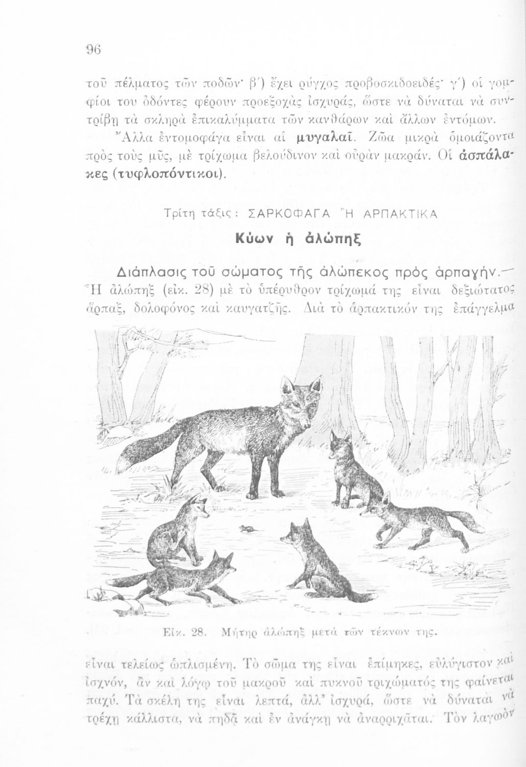 Σχολικό εγχειρίδιο Ζωολογίας/Φυτολογίας για τα Γυμνάσια και Αστικά Σχολεία που παρουσιάζει διάφορα ζώα και φυτά ανάλογα με τη συνομοταξία στην οποία ανήκουν.