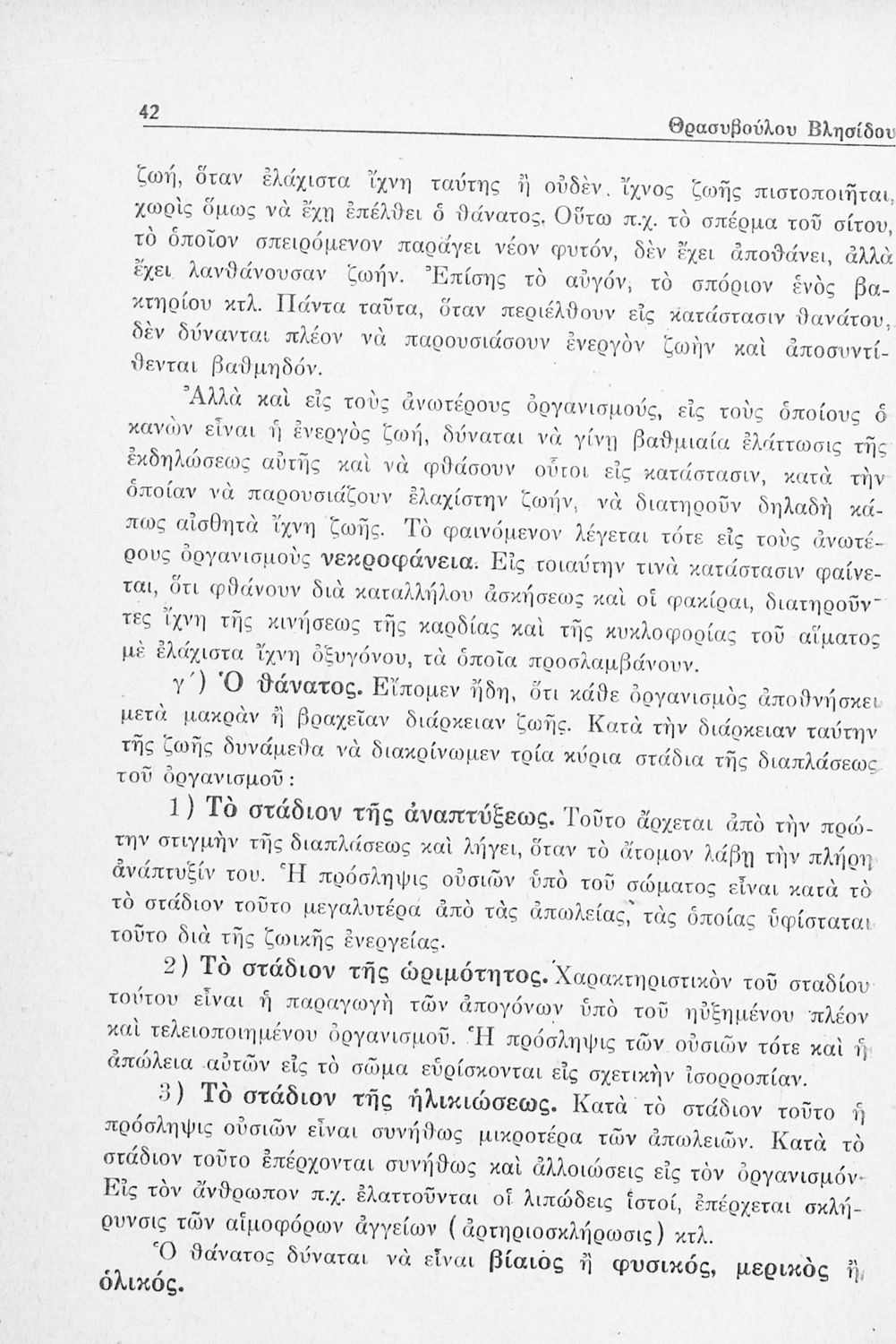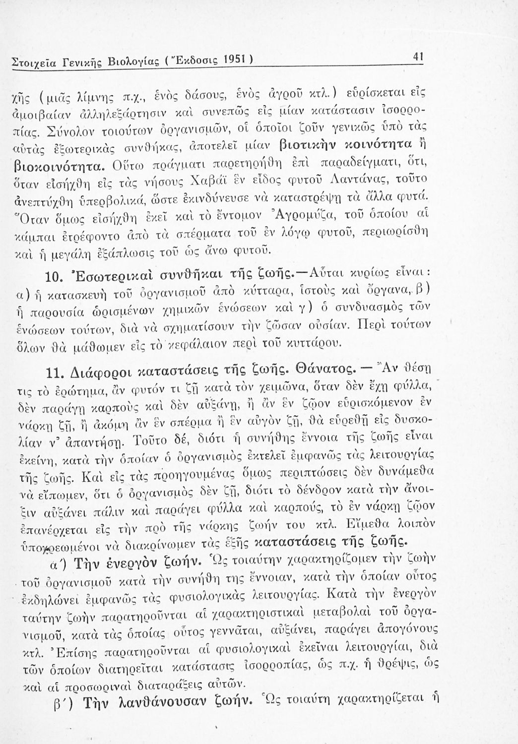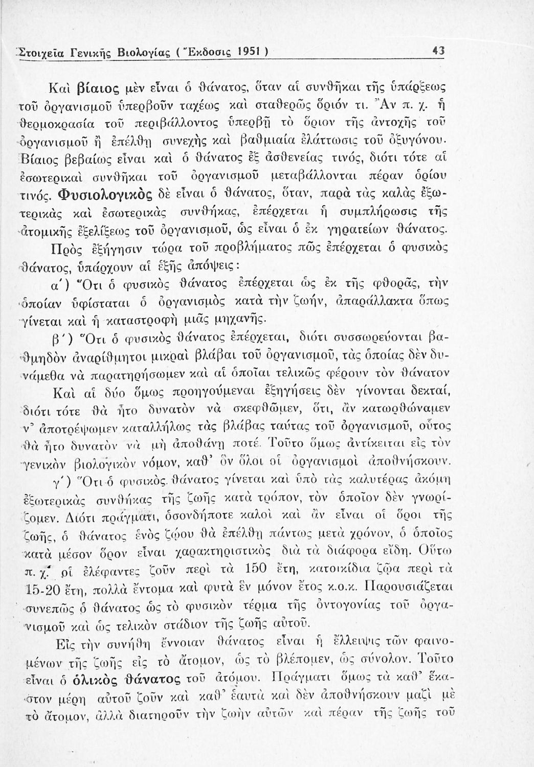 Σχολικό εγχειρίδιο Βιολογίας Δ΄ Γυμνασίου που εστιάζει στις συνθήκες γέννησης, μεταβολής και θανάτου των έμβιων οργανισμών. Ο συγγραφέας ήταν καθηγητής της γενικής Βιολογίας στο Πανεπιστήμιο Αθηνών.