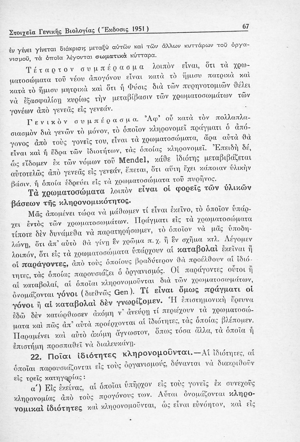 Στοιχεία Γενικής Βιολογίας δια την Δ' τάξιν των Γυμνασίων