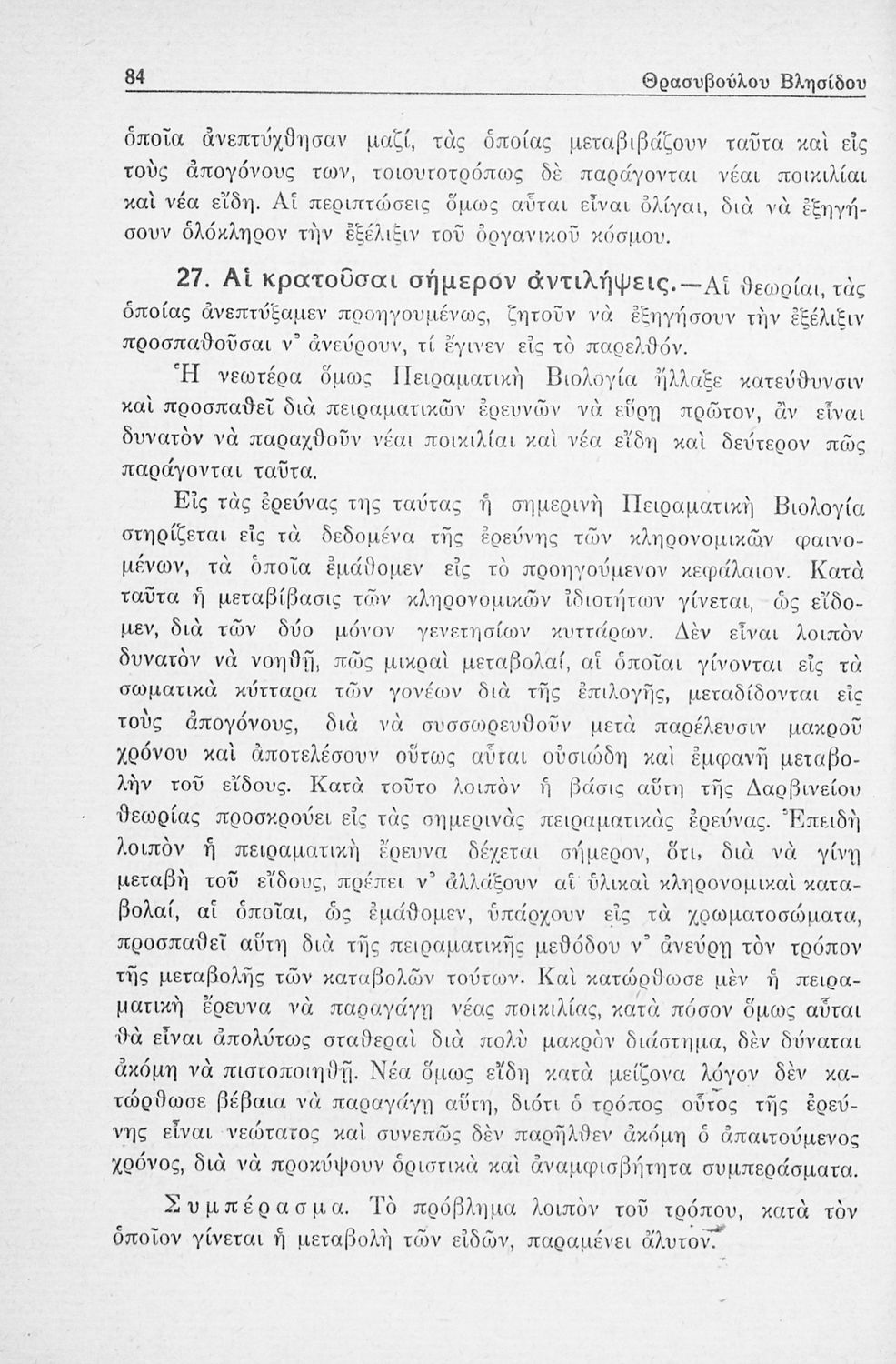 Σχολικό εγχειρίδιο Βιολογίας Δ΄ Γυμνασίου που εστιάζει στις συνθήκες γέννησης, μεταβολής και θανάτου των έμβιων οργανισμών. Ο συγγραφέας ήταν καθηγητής της γενικής Βιολογίας στο Πανεπιστήμιο Αθηνών.