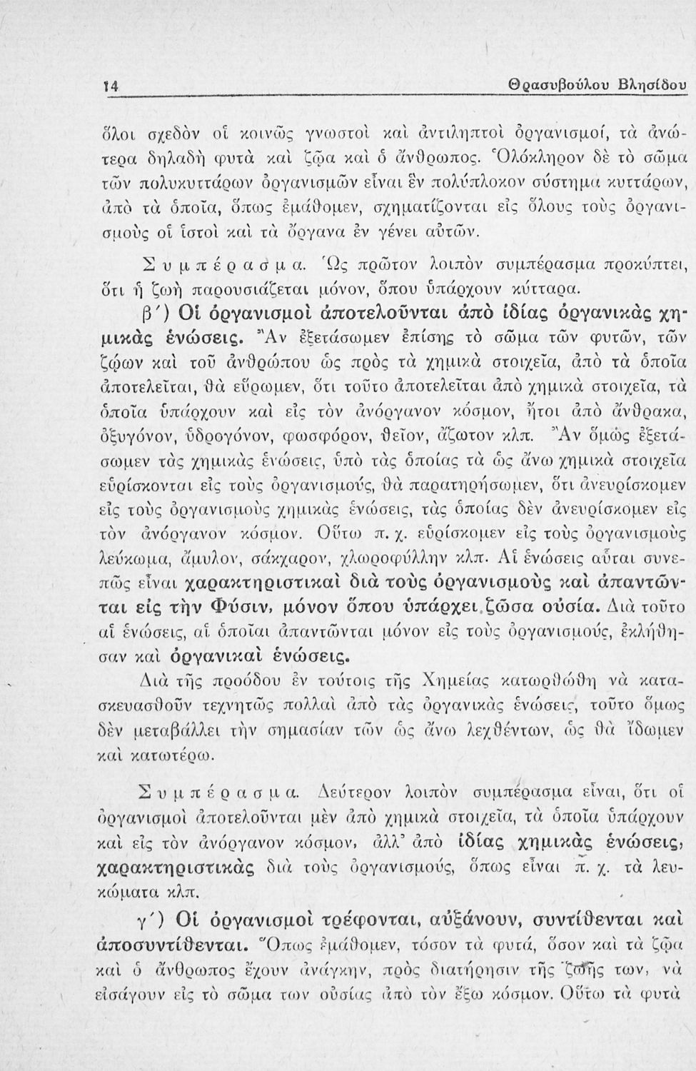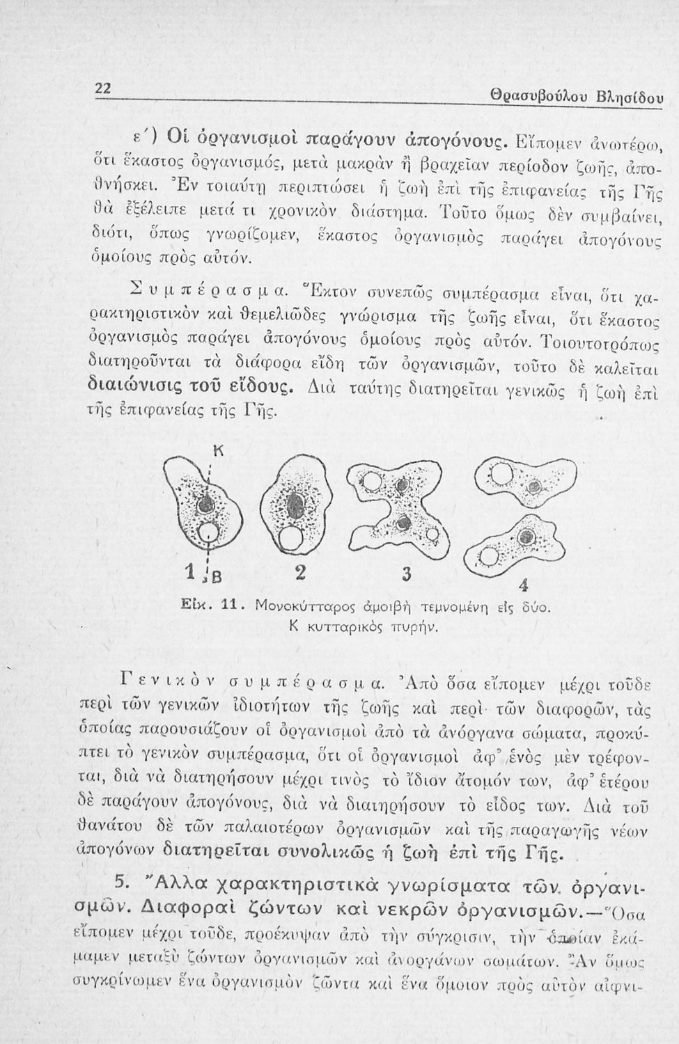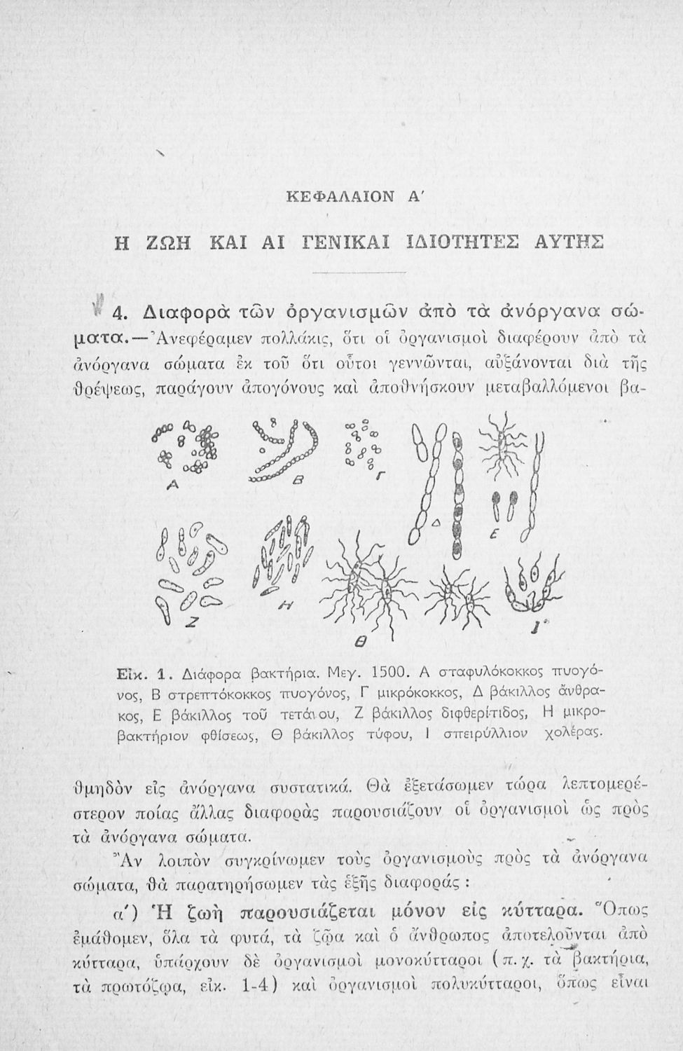 Σχολικό εγχειρίδιο Βιολογίας της Δ' Δημοτικού. Αρχίζοντας με τα βασικά δομικά στοιχεία κάθε οργανισμού, το βιβλίο εστιάζει στη δομή των ανόργανων και οργανικών σωμάτων και τα γνωρίσματά τους, για να συνεχίσει αναλύοντας τα μέρη του κυττάρου καθώς και τις συνθήκες από τις οποίες εξαρτώνται οι μορφές ζωής, όπως θερμότητα, πίεση, υγρασία. Τέλος, το βιβλίο ασχολείται με ζητήματα κληρονομικότητας και την έννοια της εξέλιξης.