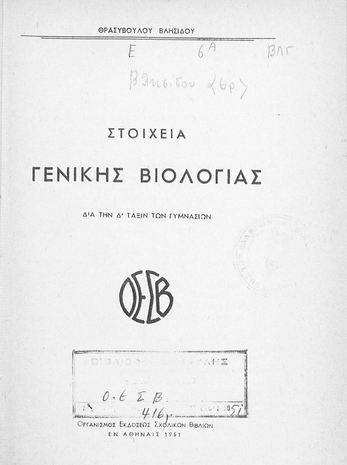 Εκδότης: Οργανισμός Εκδόσεως Σχολικών Βιβλίων Έτος έκδοσης: 1951 Τόπος έκδοσης: Αθήνα |