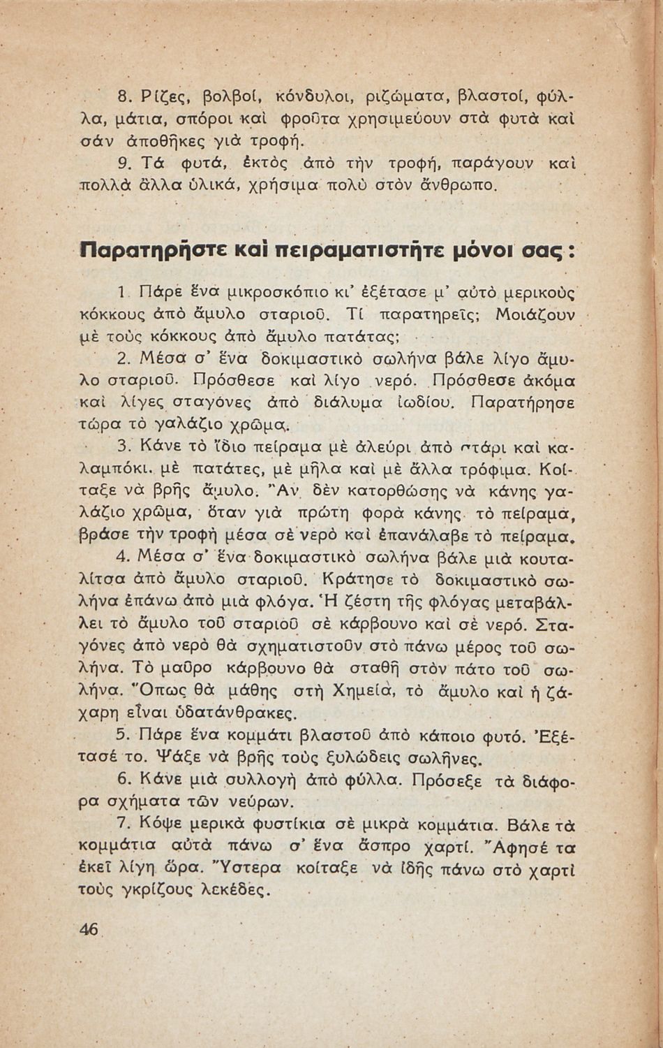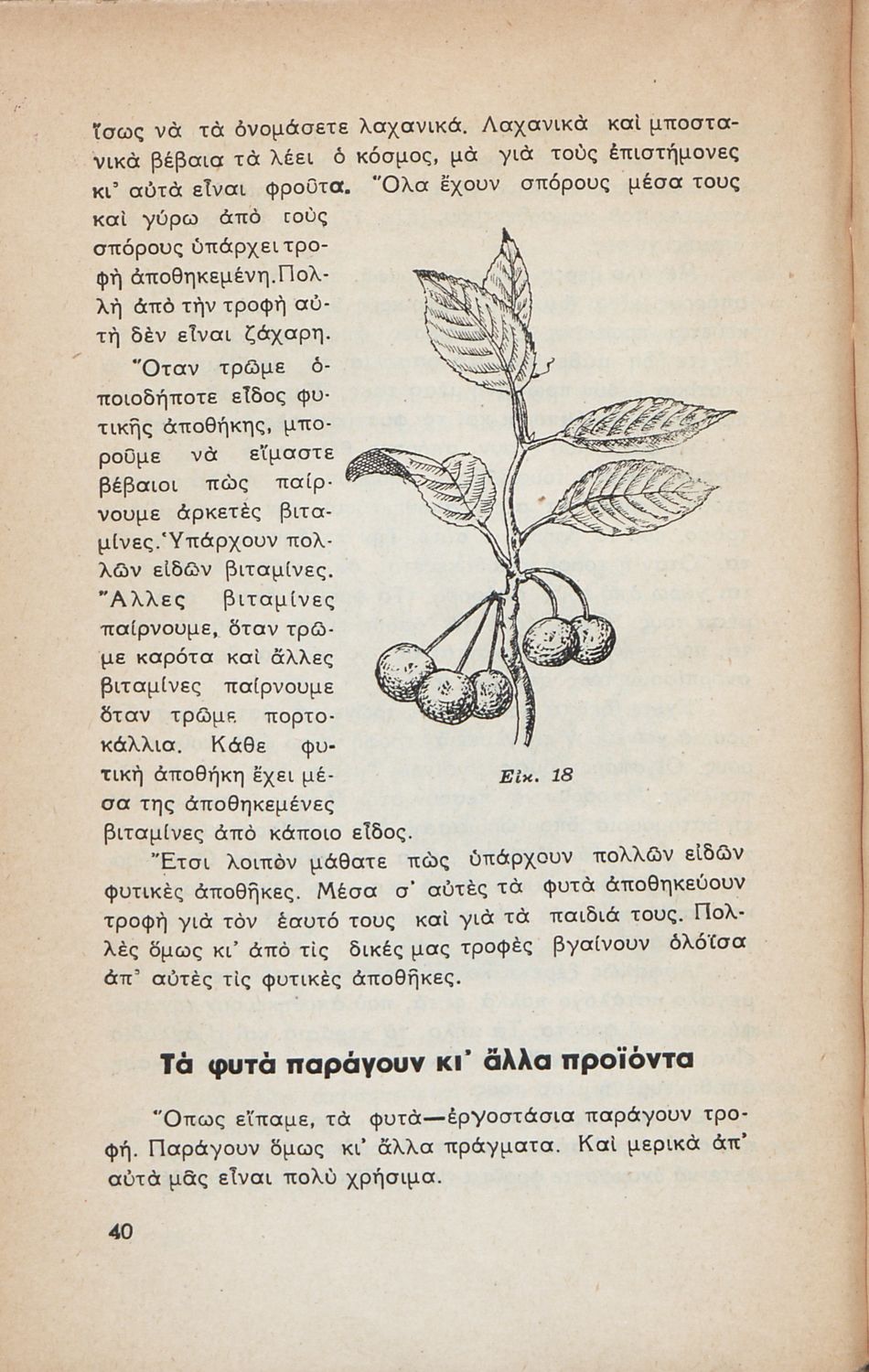 Μαθητικό βοήθημα Φυτολογίας/ Διατροφής για τους μαθητές του Δημοτικού. Το βιβλίο περιγράφει τις τροφές που παίρνουμε από τα φυτά και τις διατροφικές τους αξίες και τον τρόπο με τον οποίο πρέπει να τα καταναλώνουμε.
