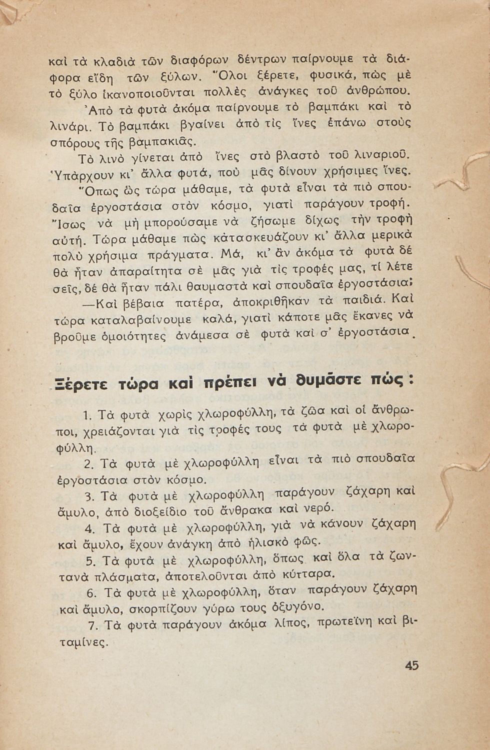 Παρουσίαση περιεχομένου: Μαθητικό βοήθημα Φυτολογίας/ Διατροφής για τους μαθητές του Δημοτικού. Το βιβλίο περιγράφει τις τροφές που παίρνουμε από τα φυτά και τις διατροφικές τους αξίες και τον τρόπο με τον οποίο πρέπει να τα καταναλώνουμε.