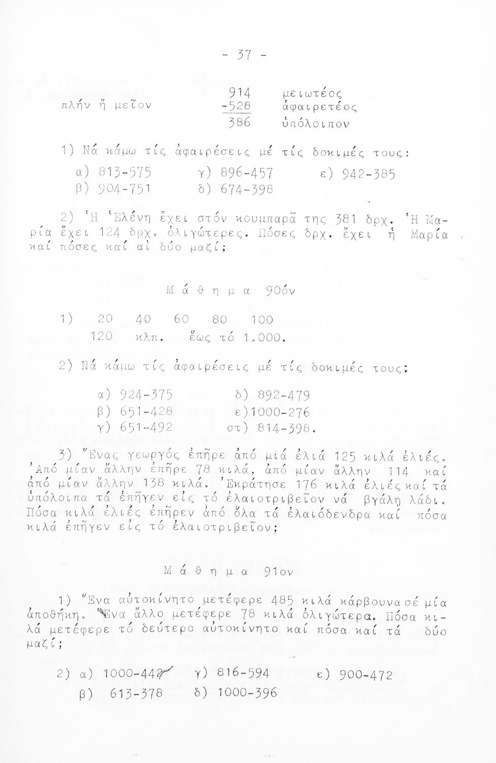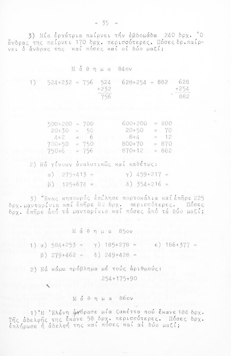 Σχολικό εγχειρίδιο με προβλήματα Αριθμητικής για την Γ΄ Δημοτικού χωρισμένο με βάση τις αριθμητικές πράξεις και τις εκατοντάδες.