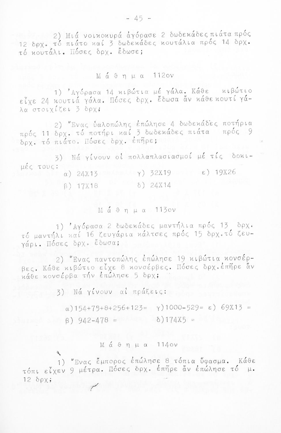 Σχολικό εγχειρίδιο Μαθηματικών ΣΤ΄ Δημοτικού που περιλαμβάνει ασκήσεις λογιστικού χαρακτήρα και ασκήσεις μέτρησης γεωμετρικών σχημάτων.