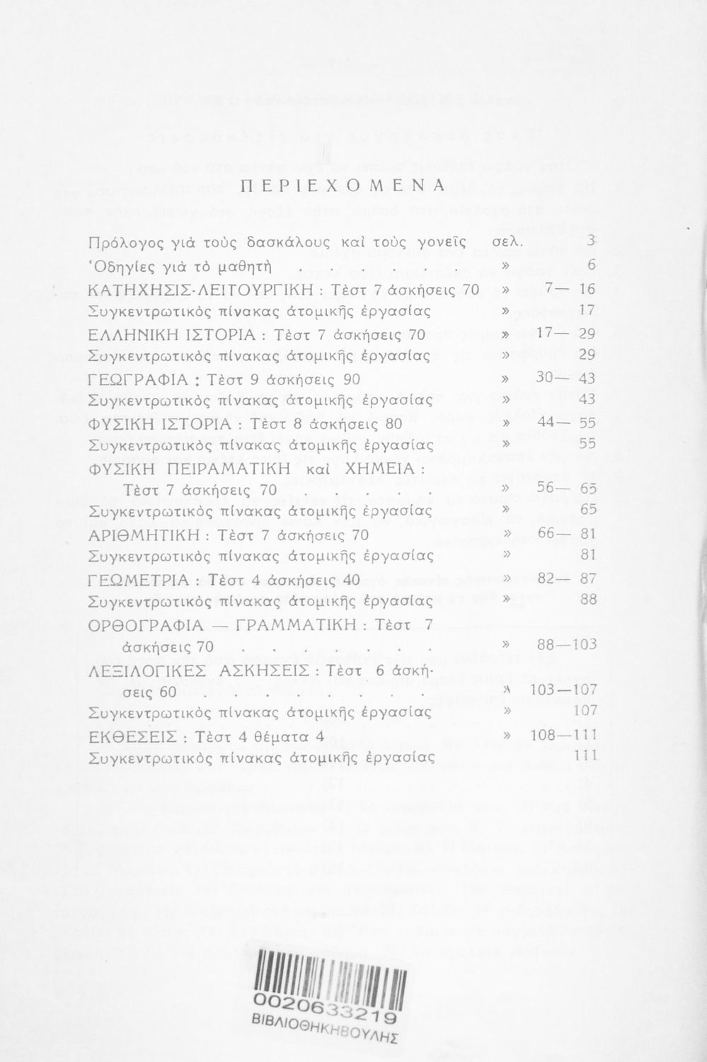 Μαθητικό βοήθημα-τετράδιο για τη ΣΤ΄ Δημοτικού που περιλαμβάνει ατομικές εργασίες με ασκήσεις σε μορφή τεστ, για όλα τα μαθήματα σύμφωνα με το επίσημο αναλυτικό πρόγραμμα.