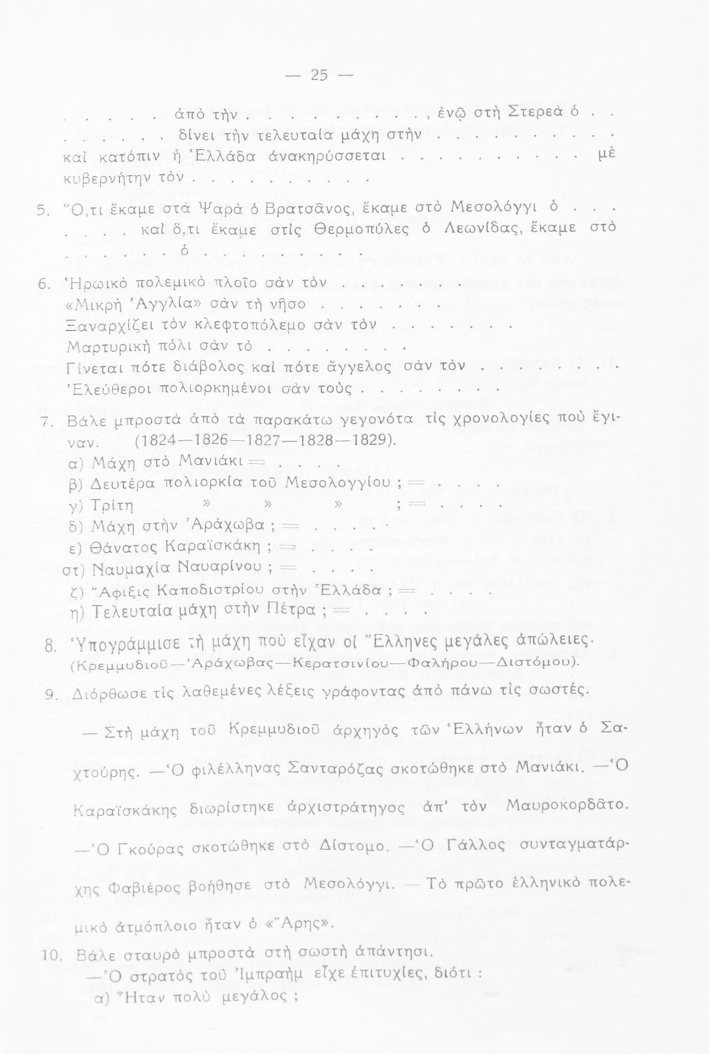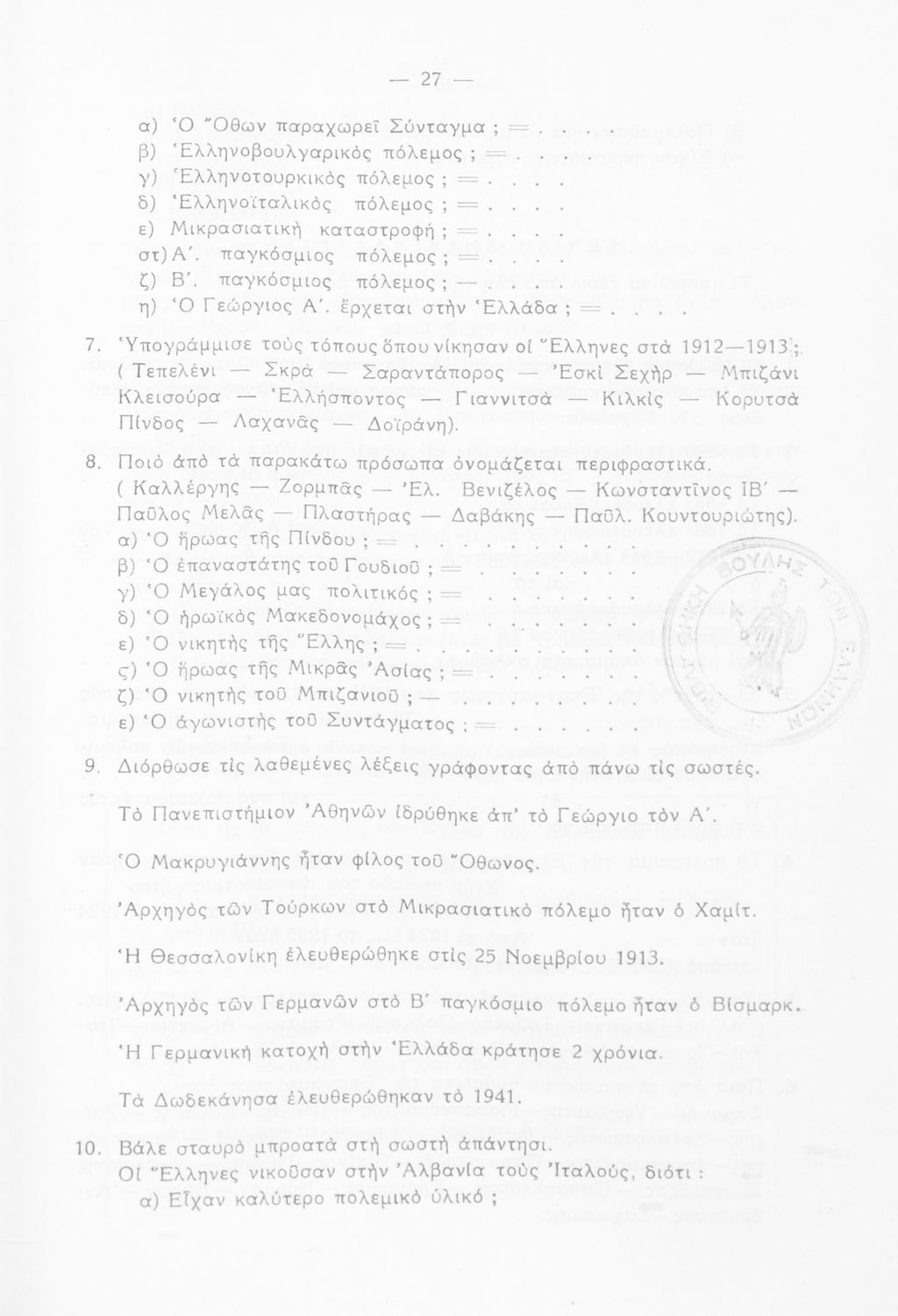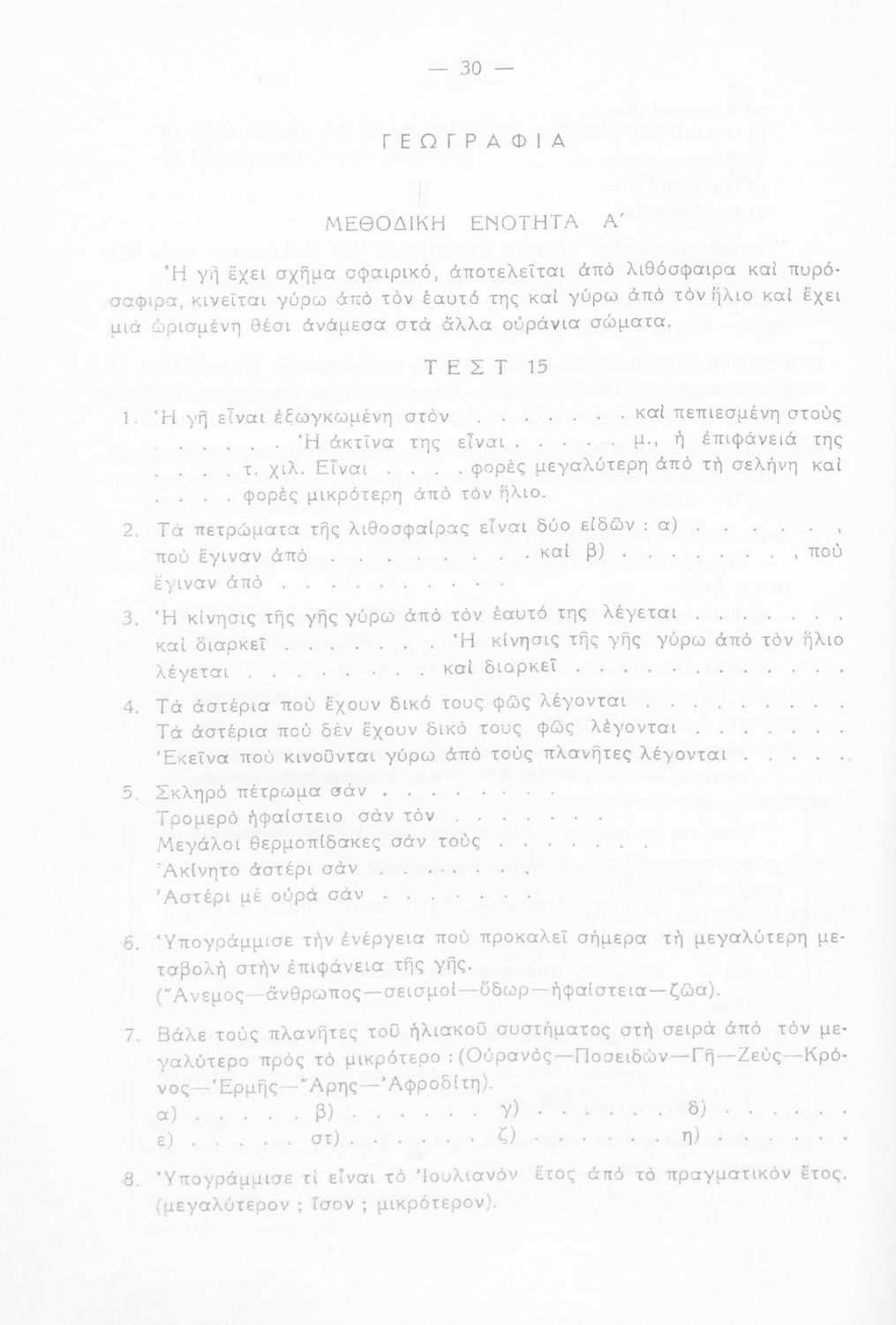 Τάξη:  Α' Γυμνασίου / Β' Γυμνασίου / Γ' Γυμνασίου