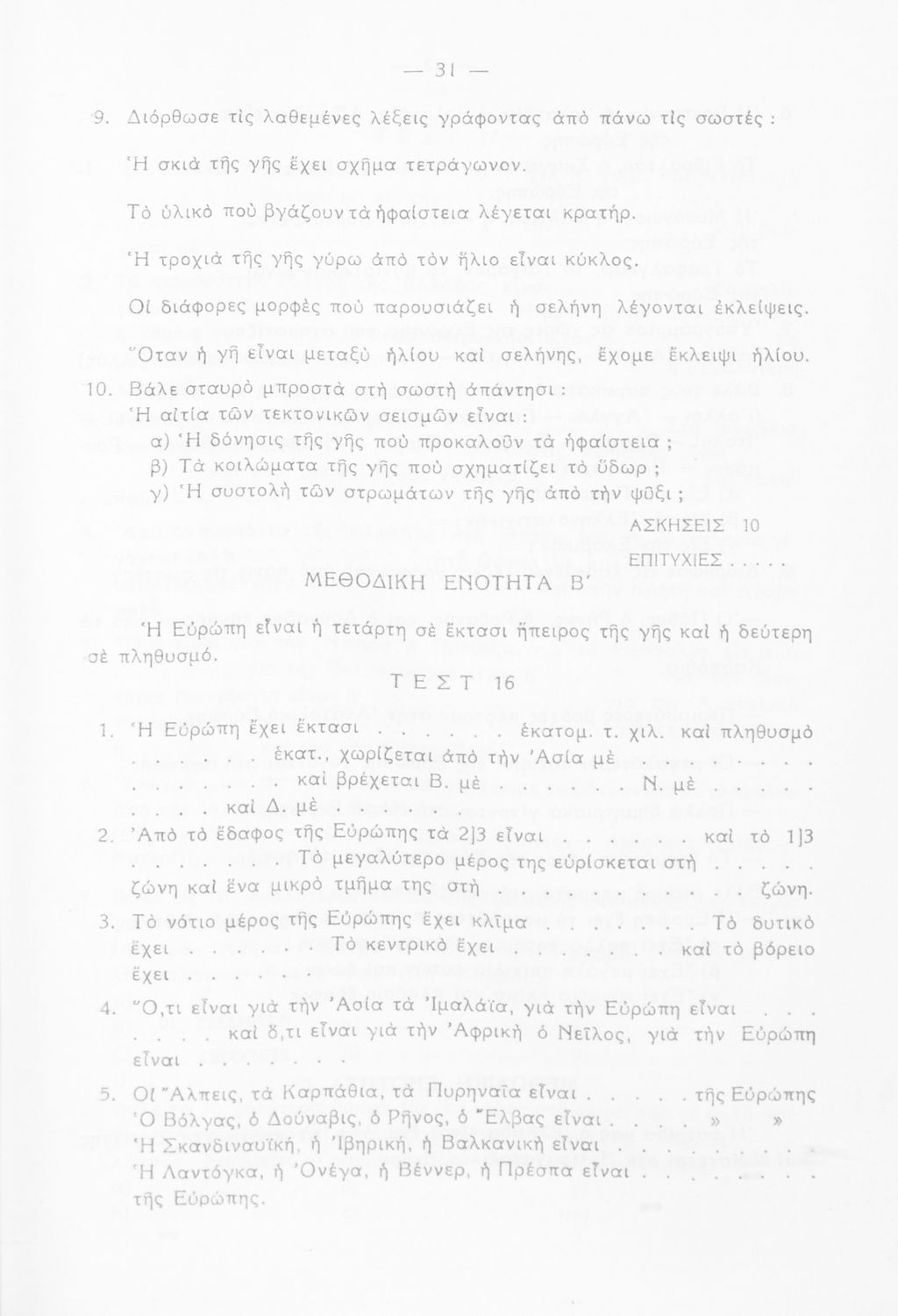 Θυμούμαι, Σκέπτομαι, Απαντώ, ασκήσεις με μορφή τεστ σε όλα τα μαθήματα σύμφωνα με το επίσημο αναλυτικό πρόγραμμα