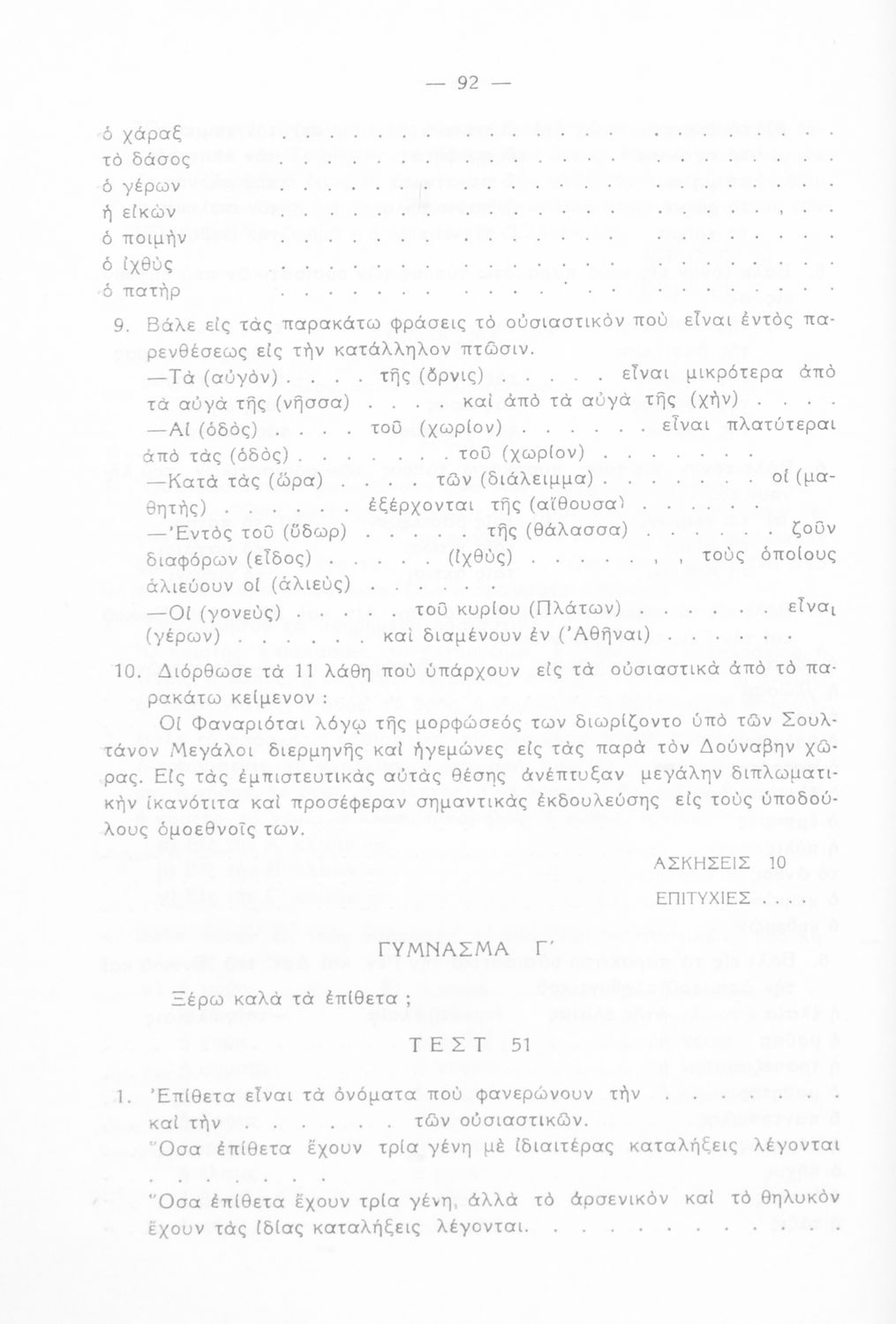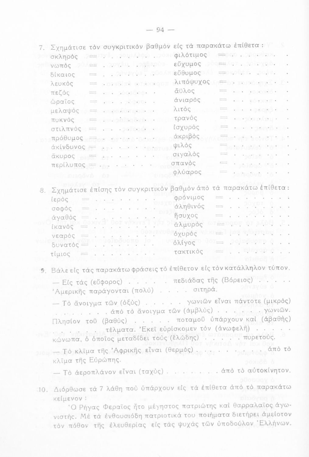 Τάξη:  Α' Γυμνασίου / Β' Γυμνασίου / Γ' Γυμνασίου
