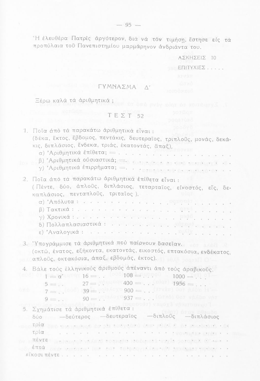 Μαθητικό βοήθημα Μαθηματικών ασκήσεων για τους μαθητές των ανωτέρων τάξεων του Δημοτικού Σχολείου. Το βοήθημα περιλαμβάνει ασκήσεις των βασικών πράξεων των ακέραιων, των συμμιγών και των κλασματικών αριθμών.