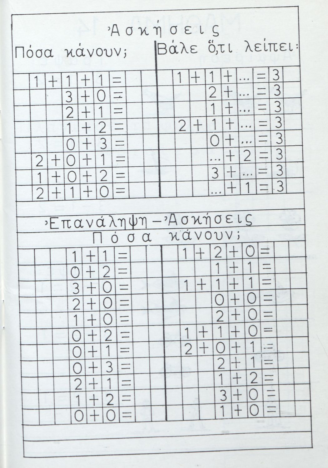 Το σύγγραμμα ήταν μαθητικό βοήθημα για το μαθήματα των Μαθηματικών στο Δημοτικό. Περιέχει ασκήσεις και θεωρία για τις 4 βασικές πράξεις. Επίσης, έχει προβλήματα με τις βασικές πράξεις. Διαθέτει σχήματα για την