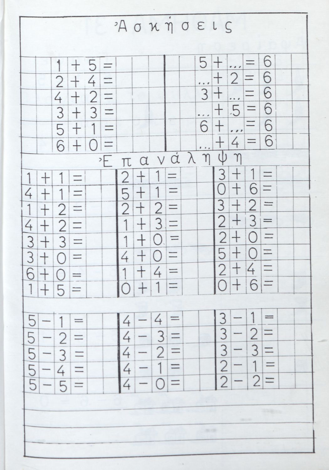 Τετράδιο Αριθμητικής για την Α' τάξη Δημοτικού