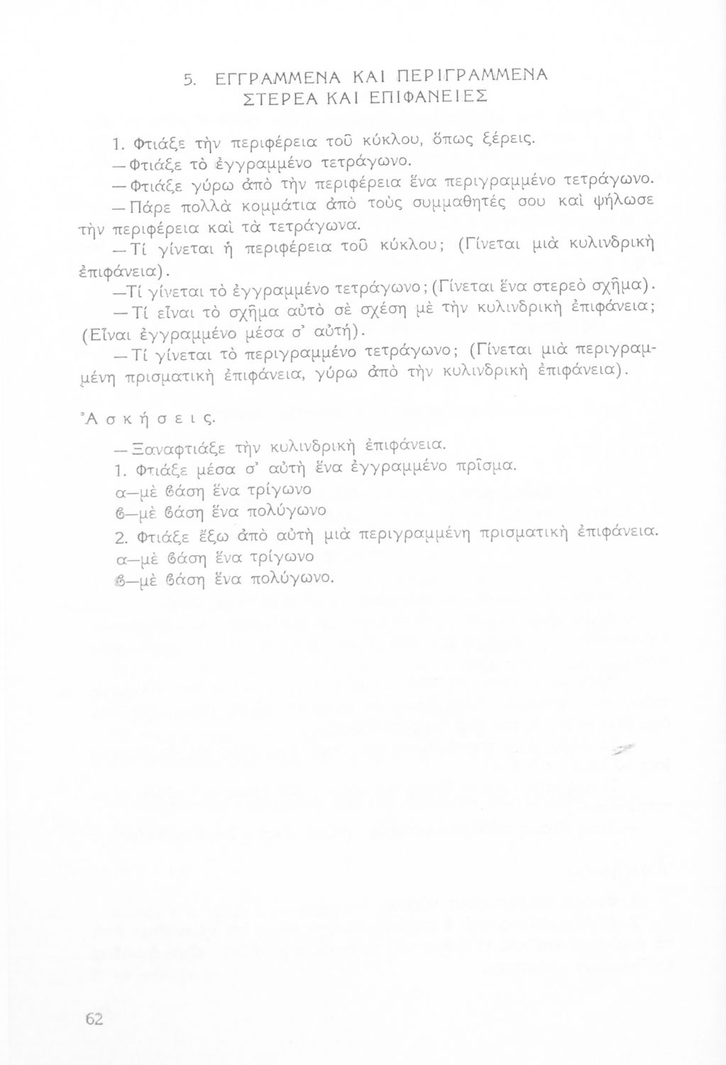 Σχολικό εγχειρίδιο Μαθηματικών για τις Δ΄, Ε΄ και ΣΤ΄ Γυμνασίου χωρισμένο σε θεωρήματα και ασκήσεις που εστιάζει στη Γεωμετρία. Φέρει το σύμβολο της δικτατορίας.
