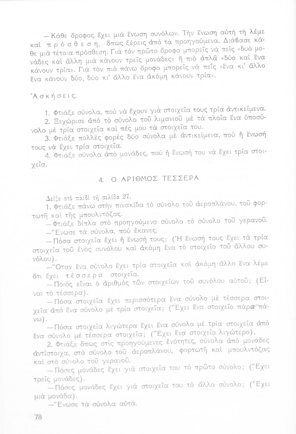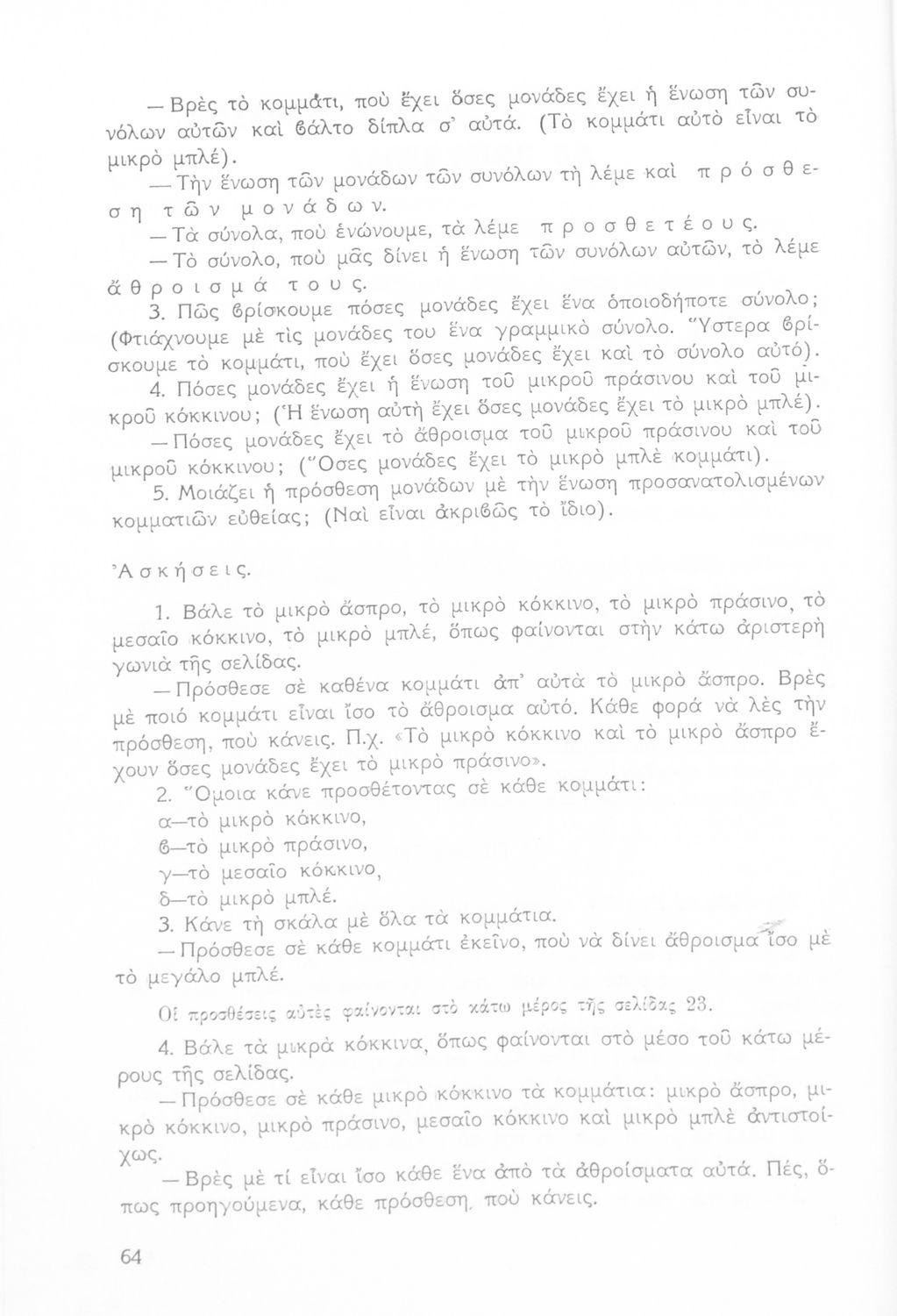 Παιδαγωγικό βοήθημα Μαθηματικών για το δάσκαλο της πρώτης Δημοτικού. Περιέχει τη θεωρία των συνόλων, τη θεωρία των πεδίων και τη σημασία των μέτρων και των αριθμών