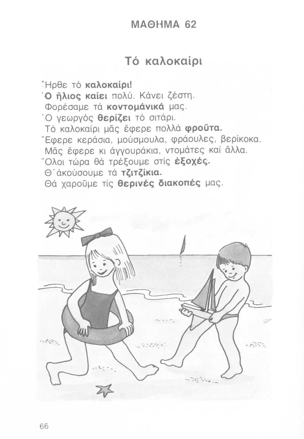 Αναγνωστικό Δημοτικού που περιέχει πεζά και ποιήματα Ελλήνων συγγραφέων τα οποία αντλούν τα θέματά τους από την καθημερινή ζωή των ανθρώπων και τη σχέση τους με τη φύση.