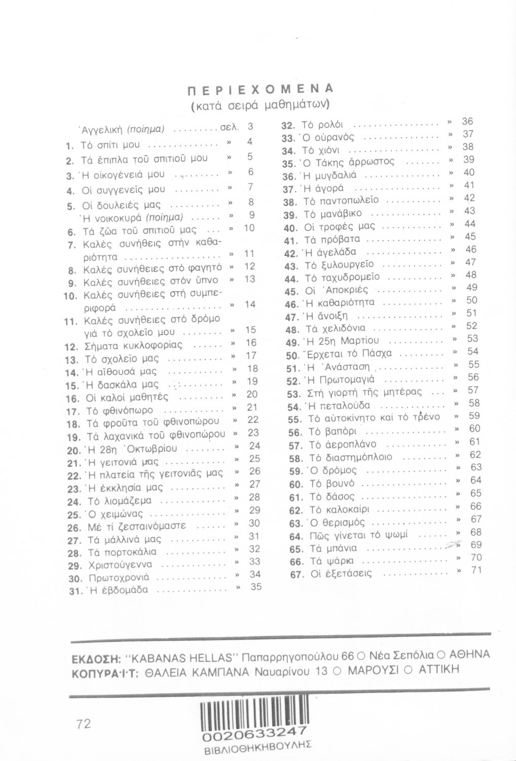 Μέγεθος και υπόστρωμα: Σχολικό εγχειρίδιο, μαλακό εξώφυλλο, 72 σελίδες. Εικόνες, σκίτσα (έγχρωμα).