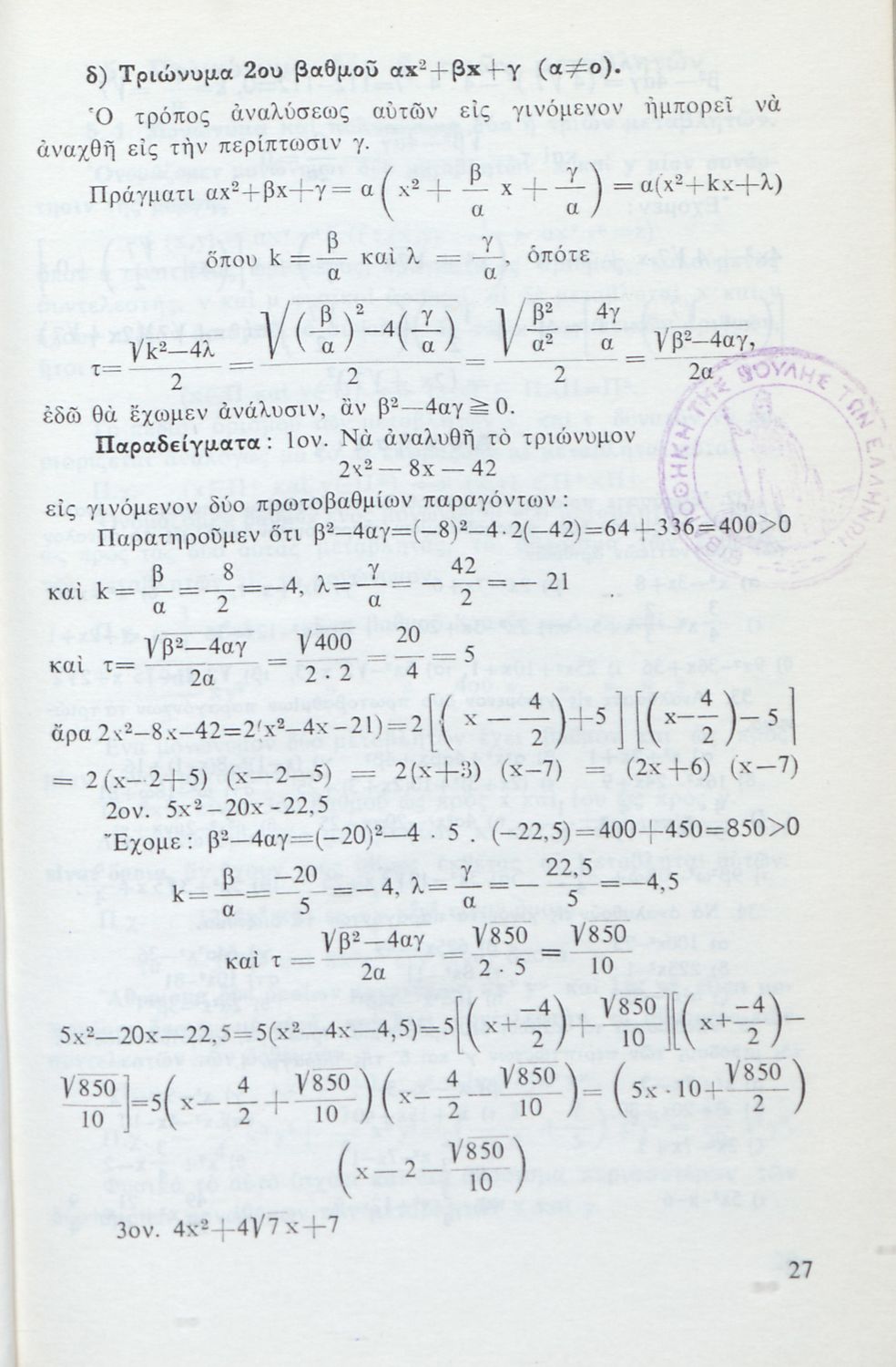 Μαθηματικά δια την Γ' τάξιν του Γυμνασίου συμφώνως προς το νέον αναλυτικόν πρόγραμμα