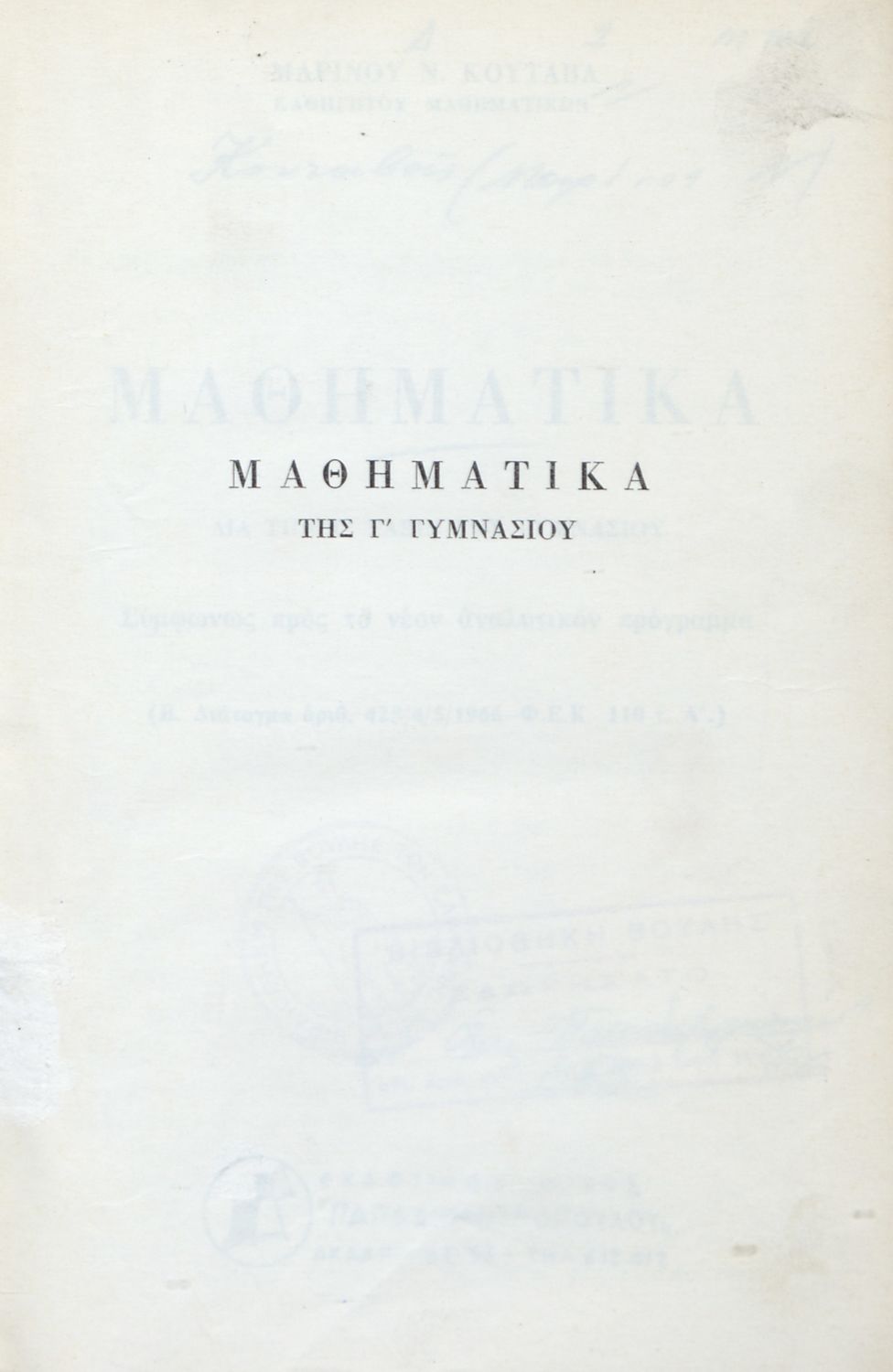 Μαθητικό βοήθημα Μαθηματικών για τους μαθητές της Γ΄ Γυμνασίου το οποίο περιέχει τις βασικές αρχές και αξιώματα των Μαθηματικών καθώς και σειρά ασκήσεων πρωτοβάθμιων και δευτεροβάθμιων εξισώσεων.