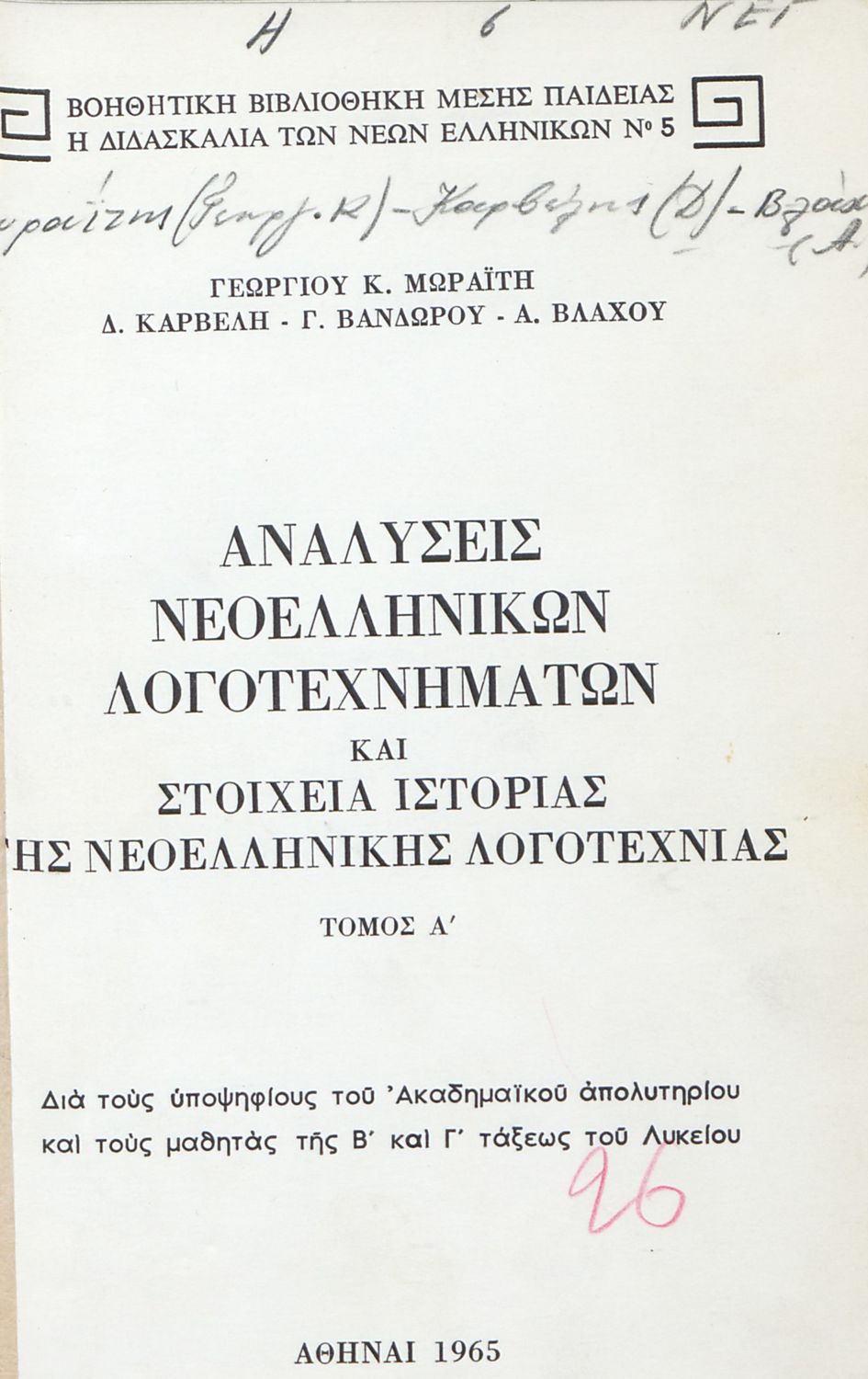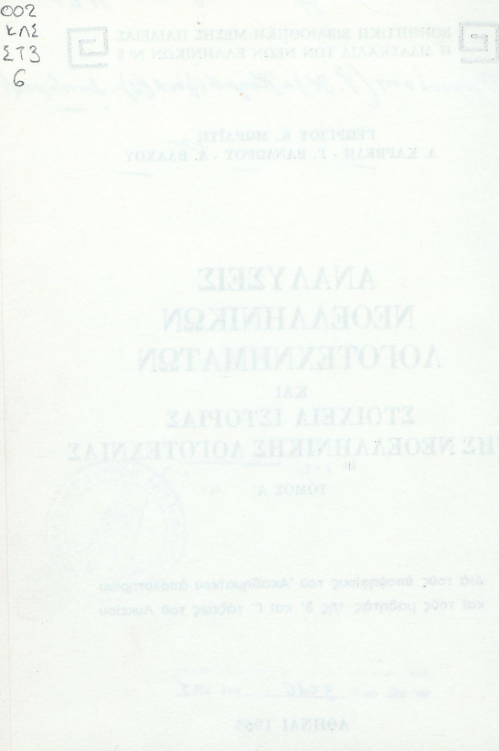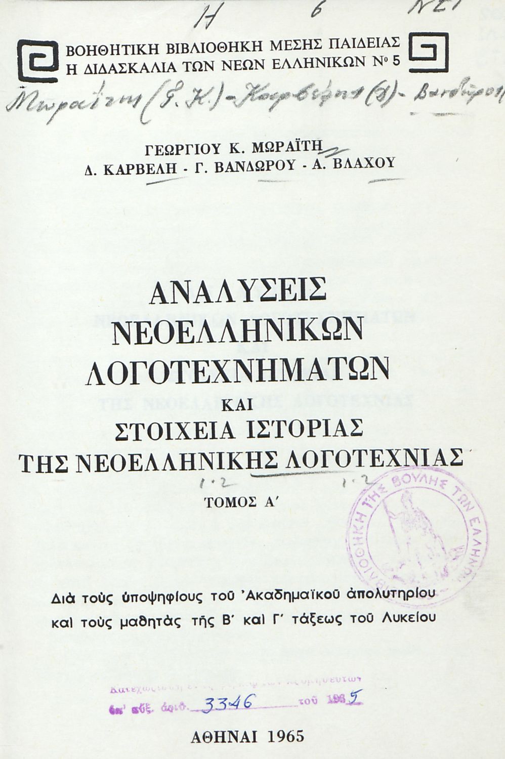 Έτος έκδοσης: 1965 Τόπος έκδοσης: Αθήνα |