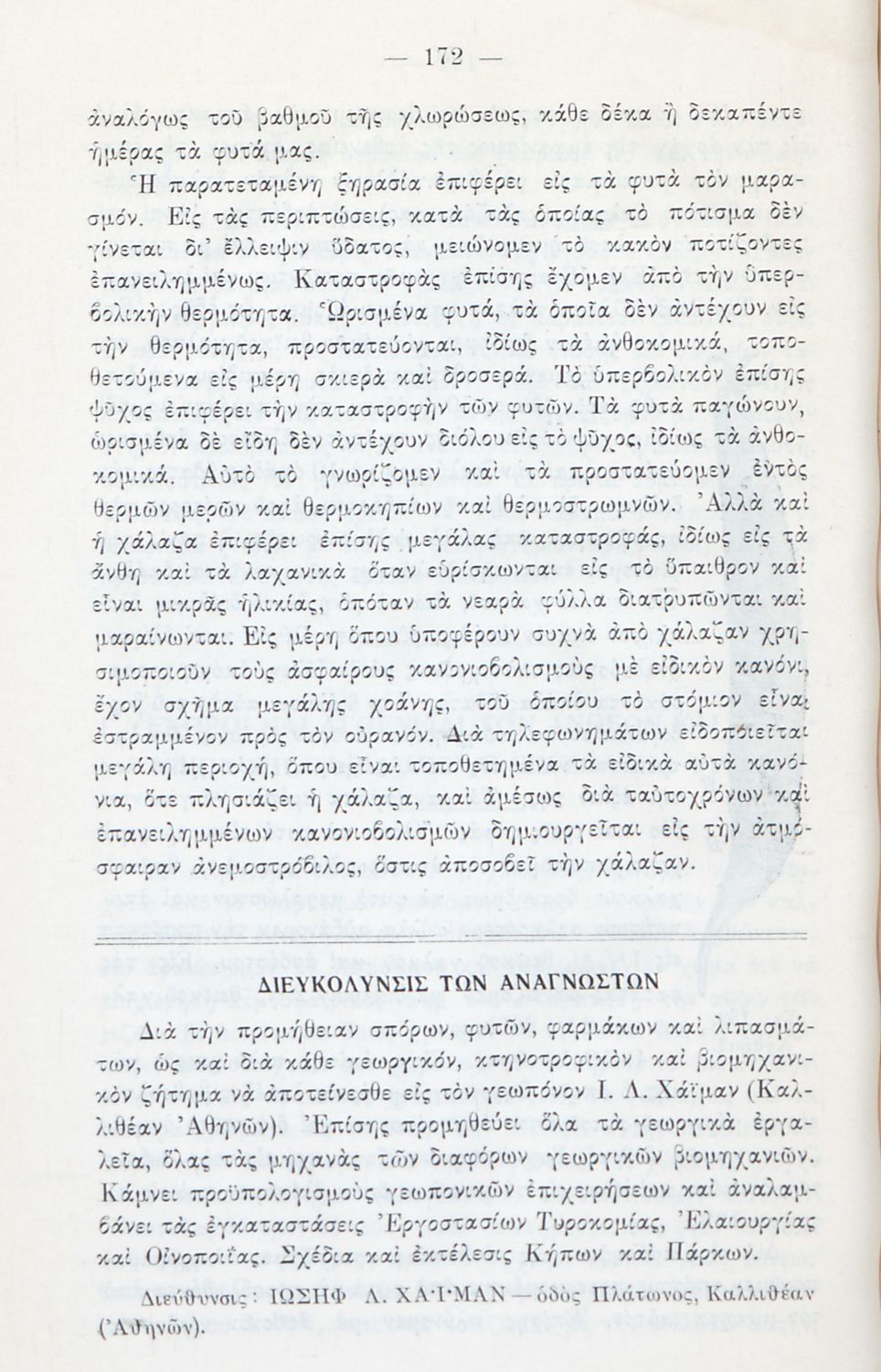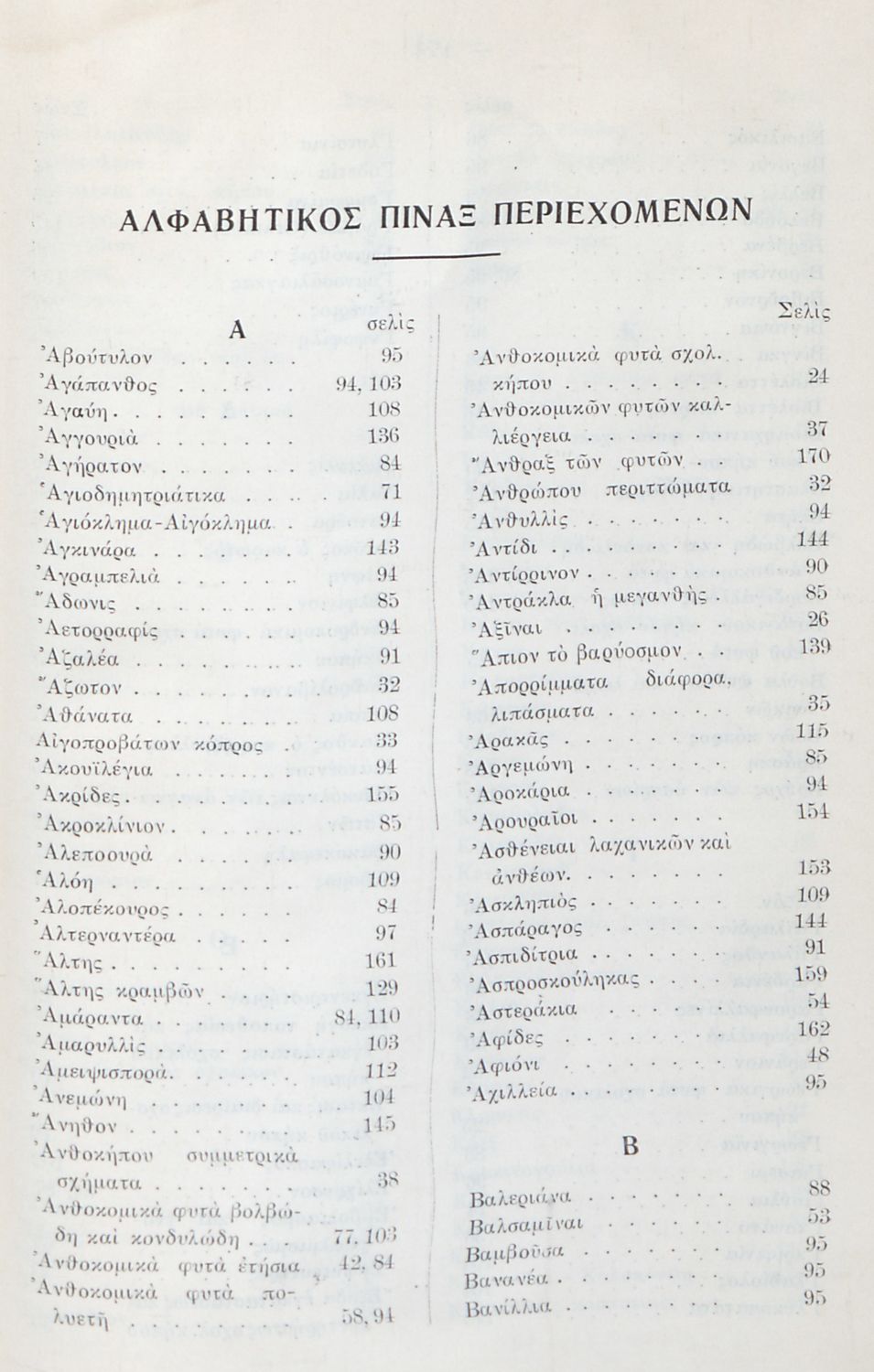 Παιδαγωγικό βοήθημα Ανθοκομίας και Λαχανοκηπίας που εξετάζει τον τρόπο διαμόρφωσης σχολικών κήπων και εξηγεί στους δασκάλους πως να εκπαιδεύσουν τους μαθητές στην κατασκευή τους. Επίσης περιέχει στοιχεία για τους εχθρούς και τις ασθένειες των ανθέων και λαχανικών και τους τρόπους θεραπείας, και κατάλογο με καλλιεργούμενα λαχανικά και άνθη.