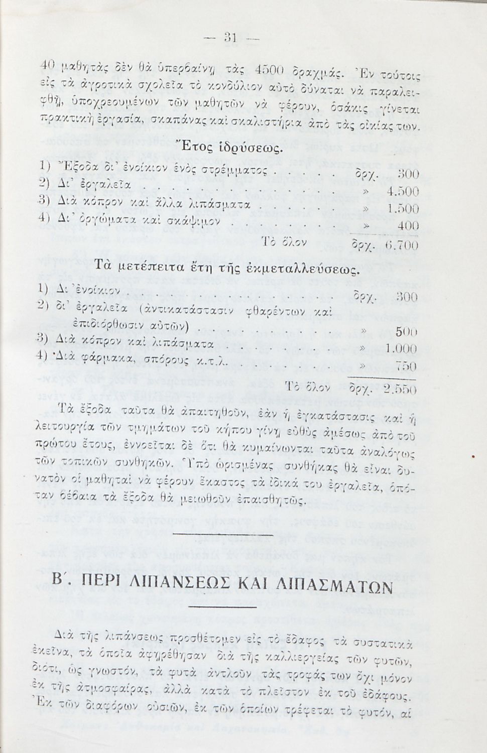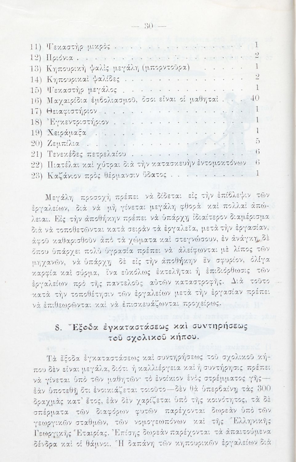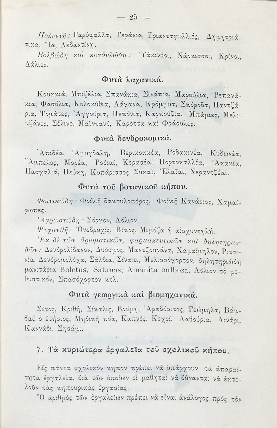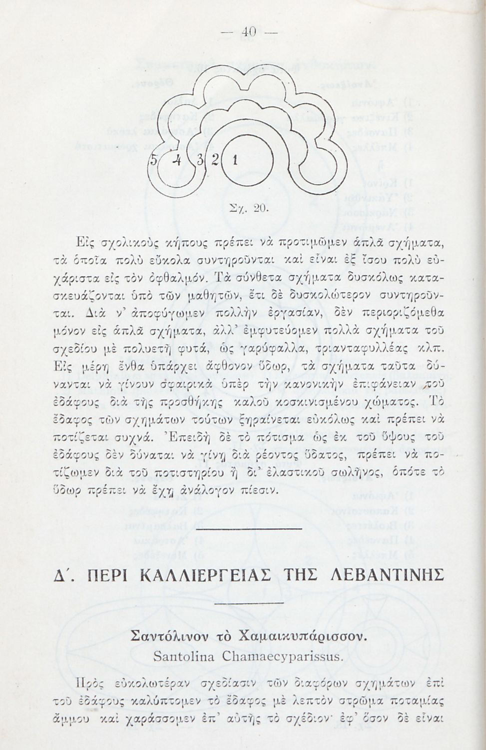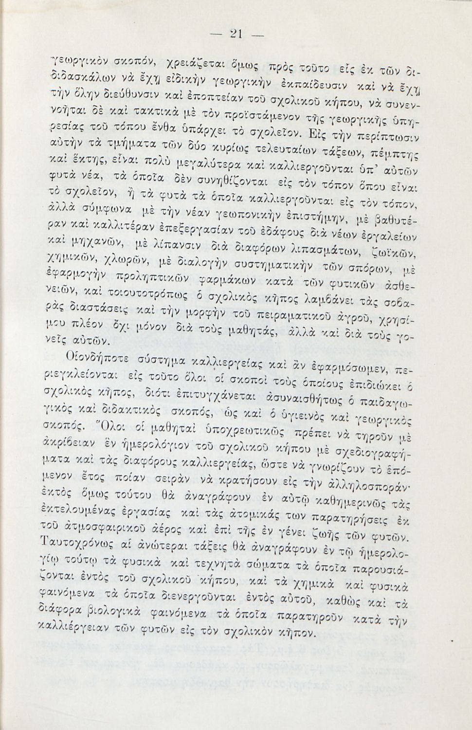 Παιδαγωγικό βοήθημα Ανθοκομίας και Λαχανοκηπίας που εξετάζει τον τρόπο διαμόρφωσης σχολικών κήπων και εξηγεί στους δασκάλους πως να εκπαιδεύσουν τους μαθητές στην κατασκευή τους. Επίσης περιέχει στοιχεία για τους εχθρούς και τις ασθένειες των ανθέων και λαχανικών και τους τρόπους θεραπείας, και κατάλογο με καλλιεργούμενα λαχανικά και άνθη.
