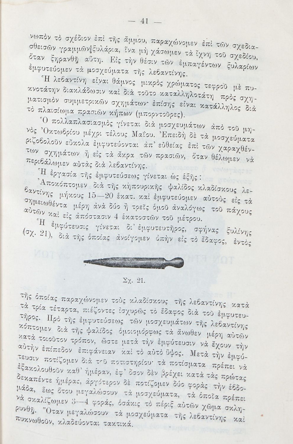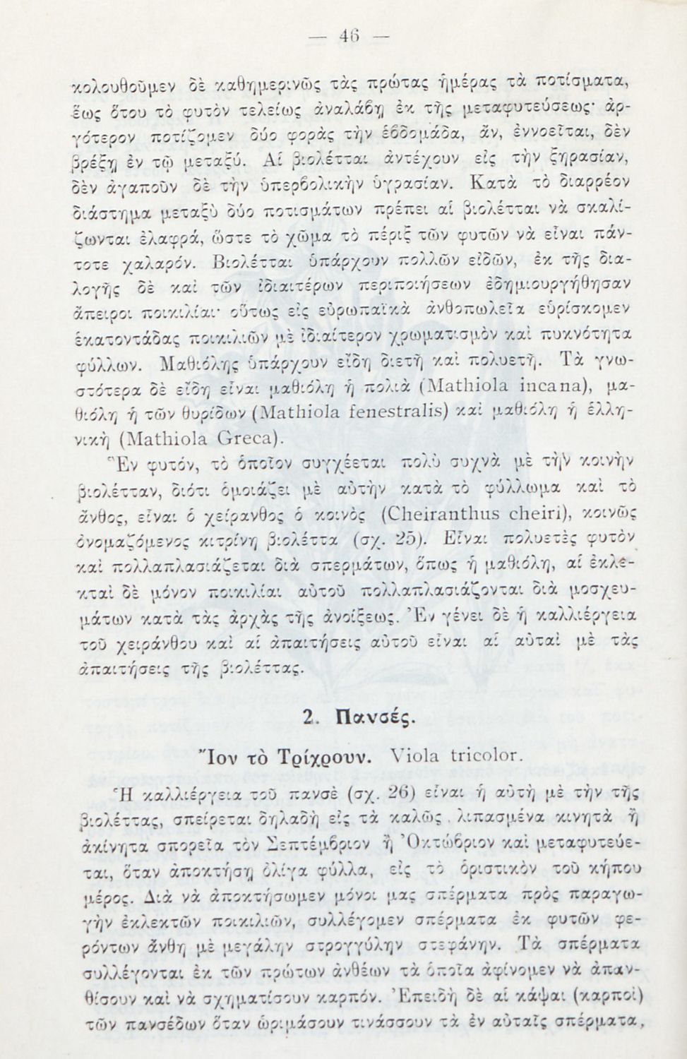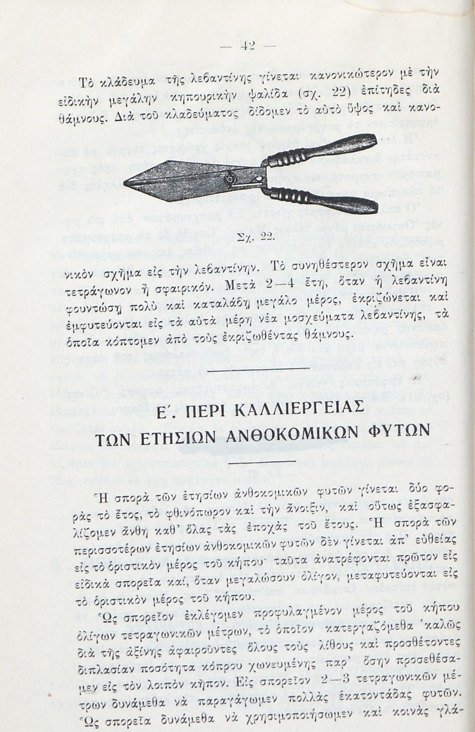 Παιδαγωγικό βοήθημα Ανθοκομίας και Λαχανοκηπίας που εξετάζει τον τρόπο διαμόρφωσης σχολικών κήπων και εξηγεί στους δασκάλους πως να εκπαιδεύσουν τους μαθητές στην κατασκευή τους. Επίσης περιέχει στοιχεία για τους εχθρούς και τις ασθένειες των ανθέων και λαχανικών και τους τρόπους θεραπείας, και κατάλογο με καλλιεργούμενα λαχανικά και άνθη.