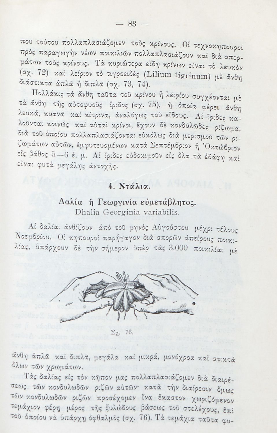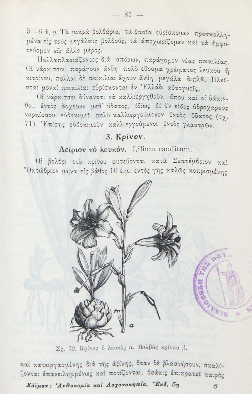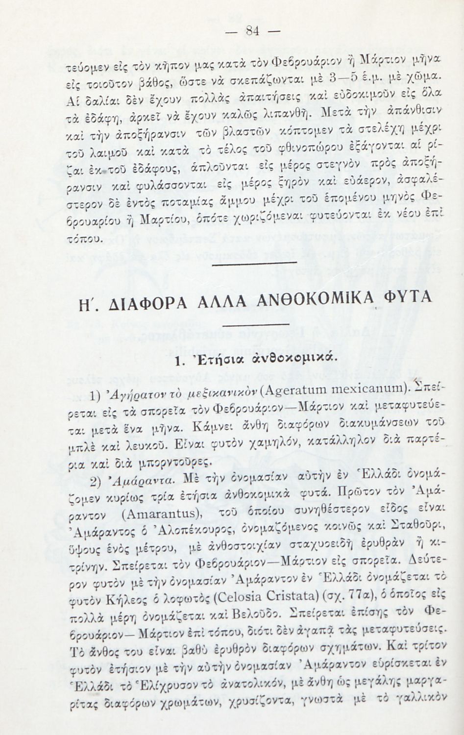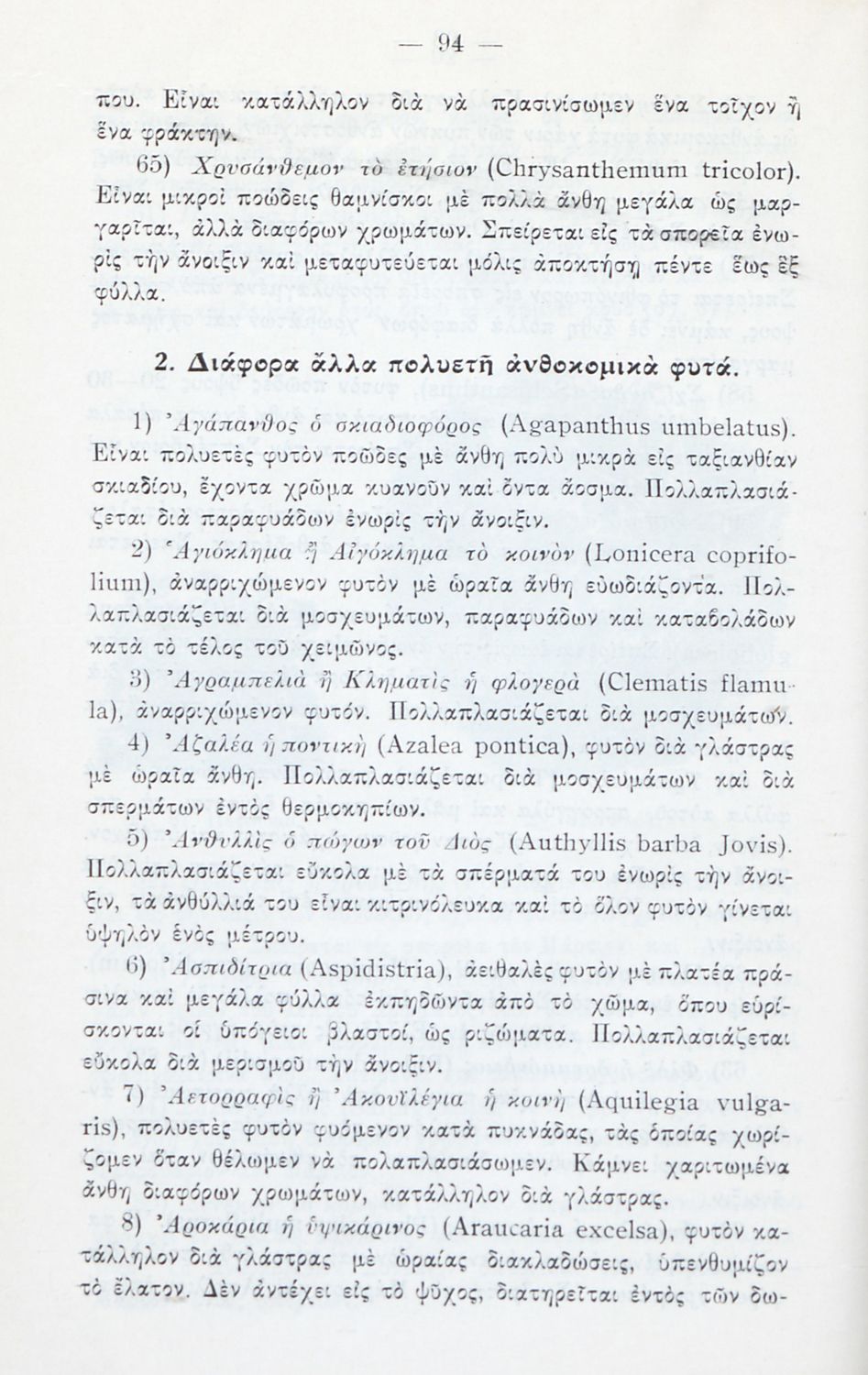 Παιδαγωγικό βοήθημα Ανθοκομίας και Λαχανοκηπίας που εξετάζει τον τρόπο διαμόρφωσης σχολικών κήπων και εξηγεί στους δασκάλους πως να εκπαιδεύσουν τους μαθητές στην κατασκευή τους. Επίσης περιέχει στοιχεία για τους εχθρούς και τις ασθένειες των ανθέων και λαχανικών και τους τρόπους θεραπείας, και κατάλογο με καλλιεργούμενα λαχανικά και άνθη.