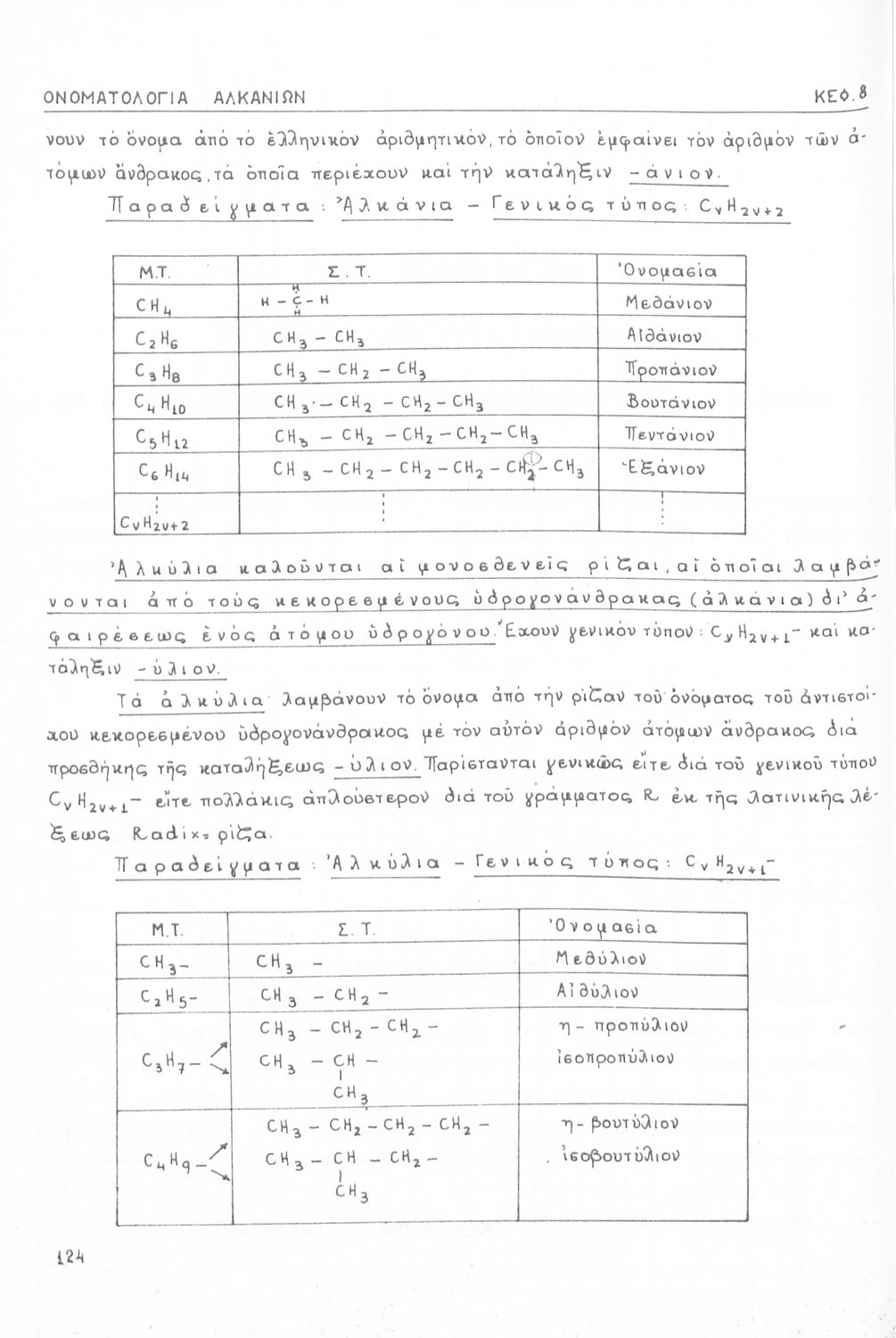 Σχολικό εγχειρίδιο Χημείας που περιγράφει τη σειρά οργανικών και λιπαρών ενώσεων, προσδιορίζονται οικογένειες και ιδιότητες οξέων-βάσεων-αλάτων καθώς γίνεται αναλυτική περιγραφή αρωματικών ενώσεων και των ...