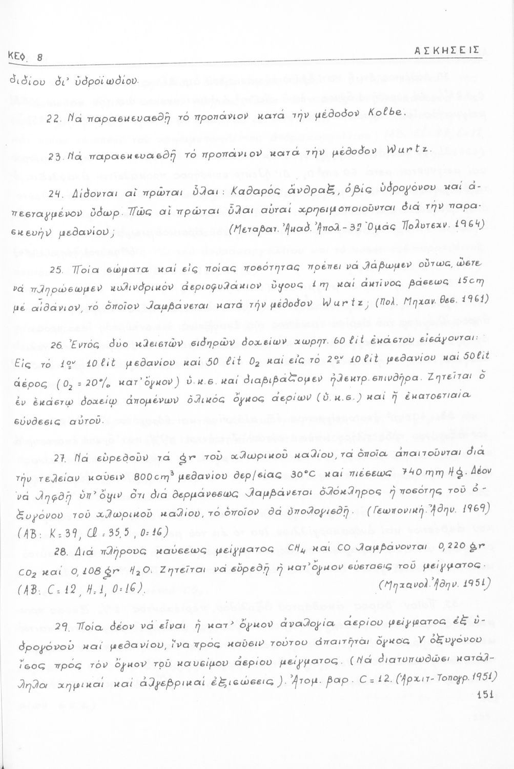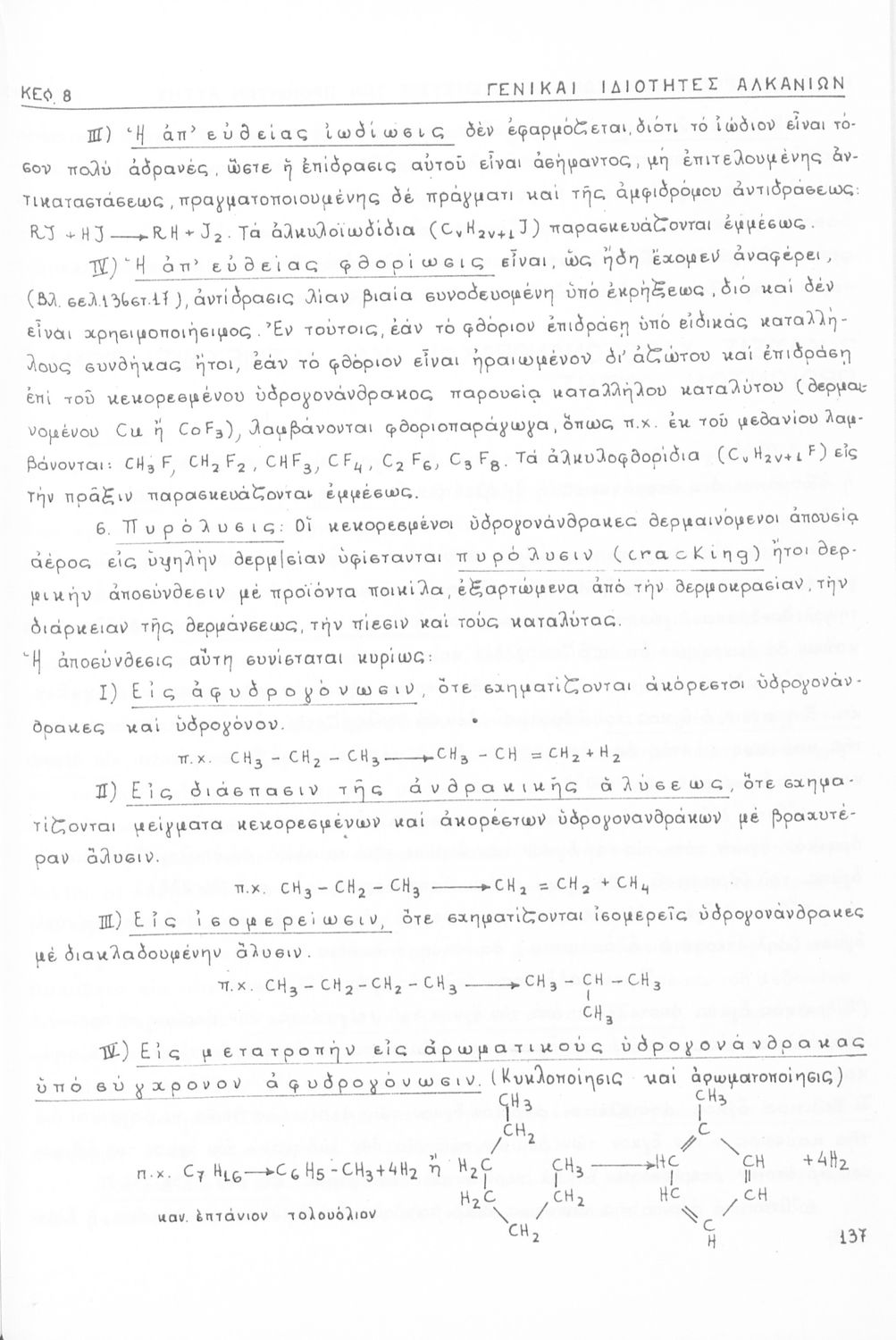 Σχολικό εγχειρίδιο για τις τάξεις του Γυμνασίου και τις Ανώτατες Σχολές για το μάθημα της Χημείας. Το εγχειρίδιο περιλαμβάνει εισαγωγικά γενικές γνώσεις της οργανικής χημείας, την σύνταξη των οργανικών ενώσεων, τις καύσιμες ύλες, αλκοόλες, υδρογονάνθρακες, αρωματικά οξέα, τα αλκαλοειδή, τα εντομοκτόνα κ.α.